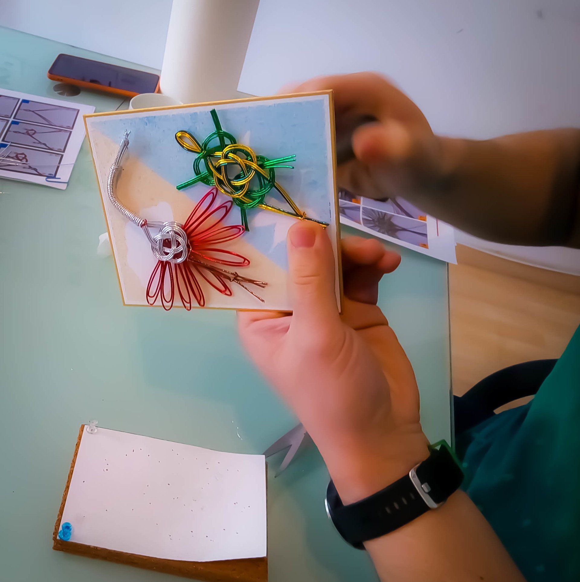 Por un lado, descubrió la caligrafía japonesa a través de Shodo Creativo, con quien sigue estudiando en la actualidad; y además, escuchó por primera vez acerca de los nudos de mizuhiki