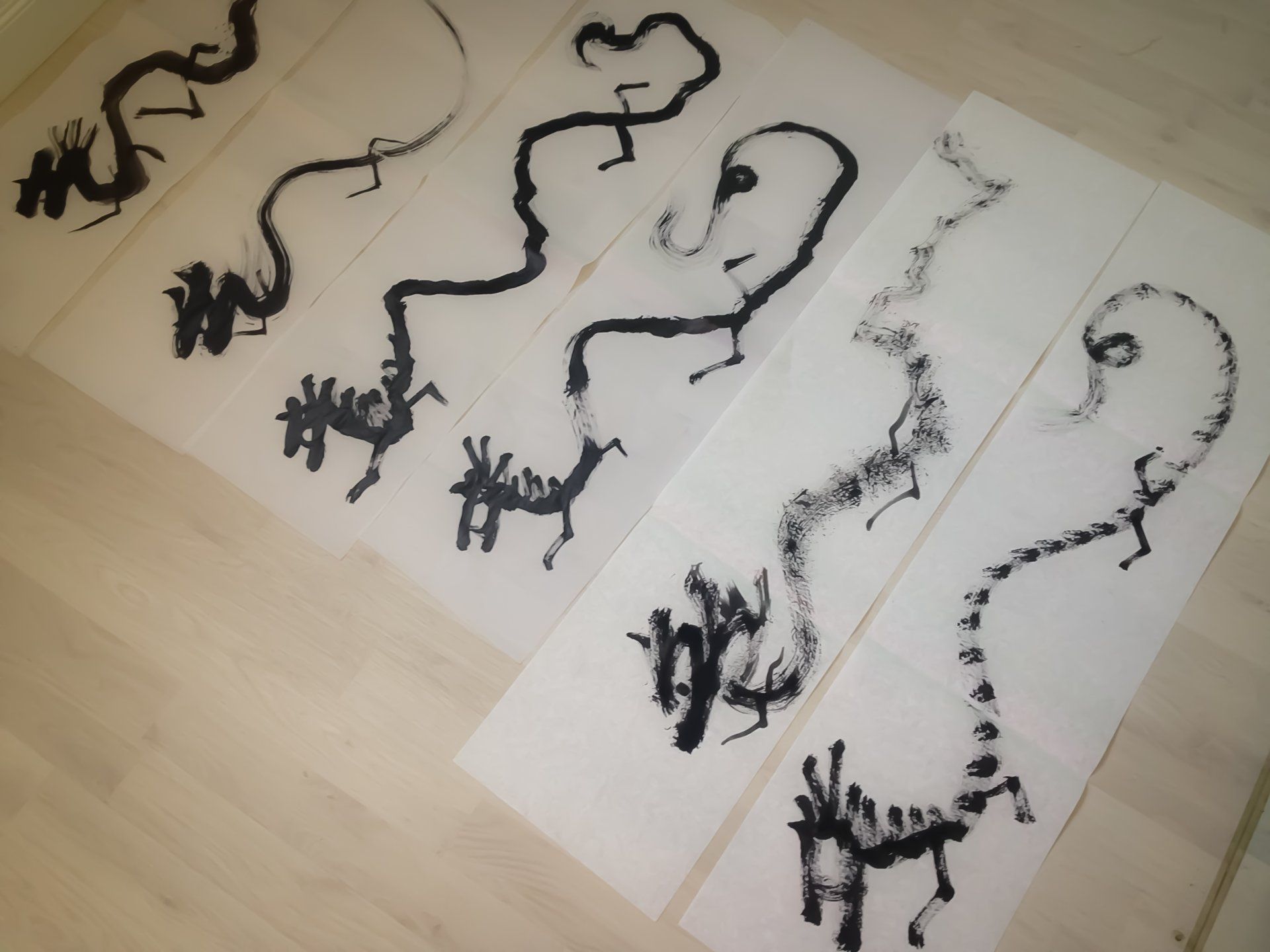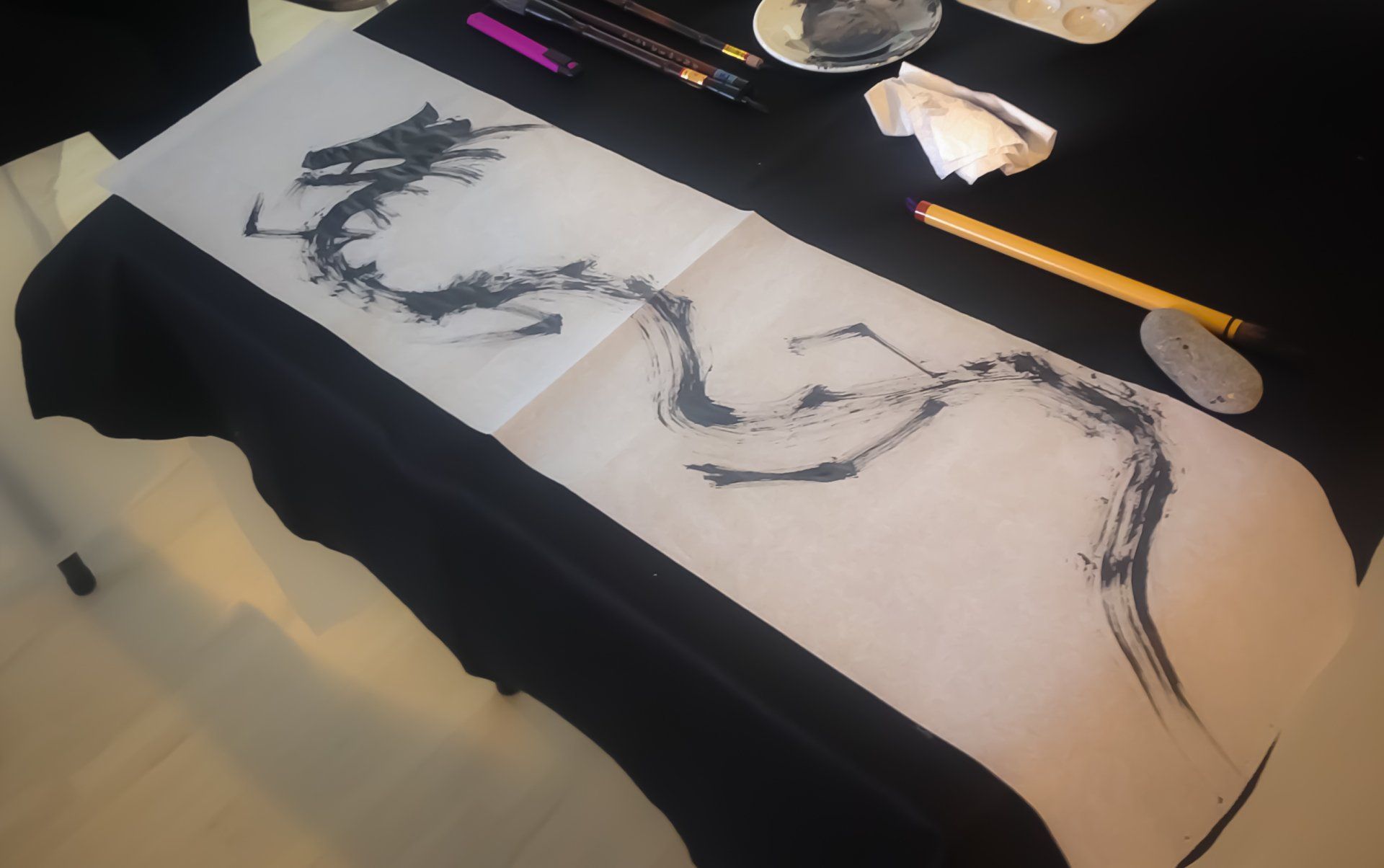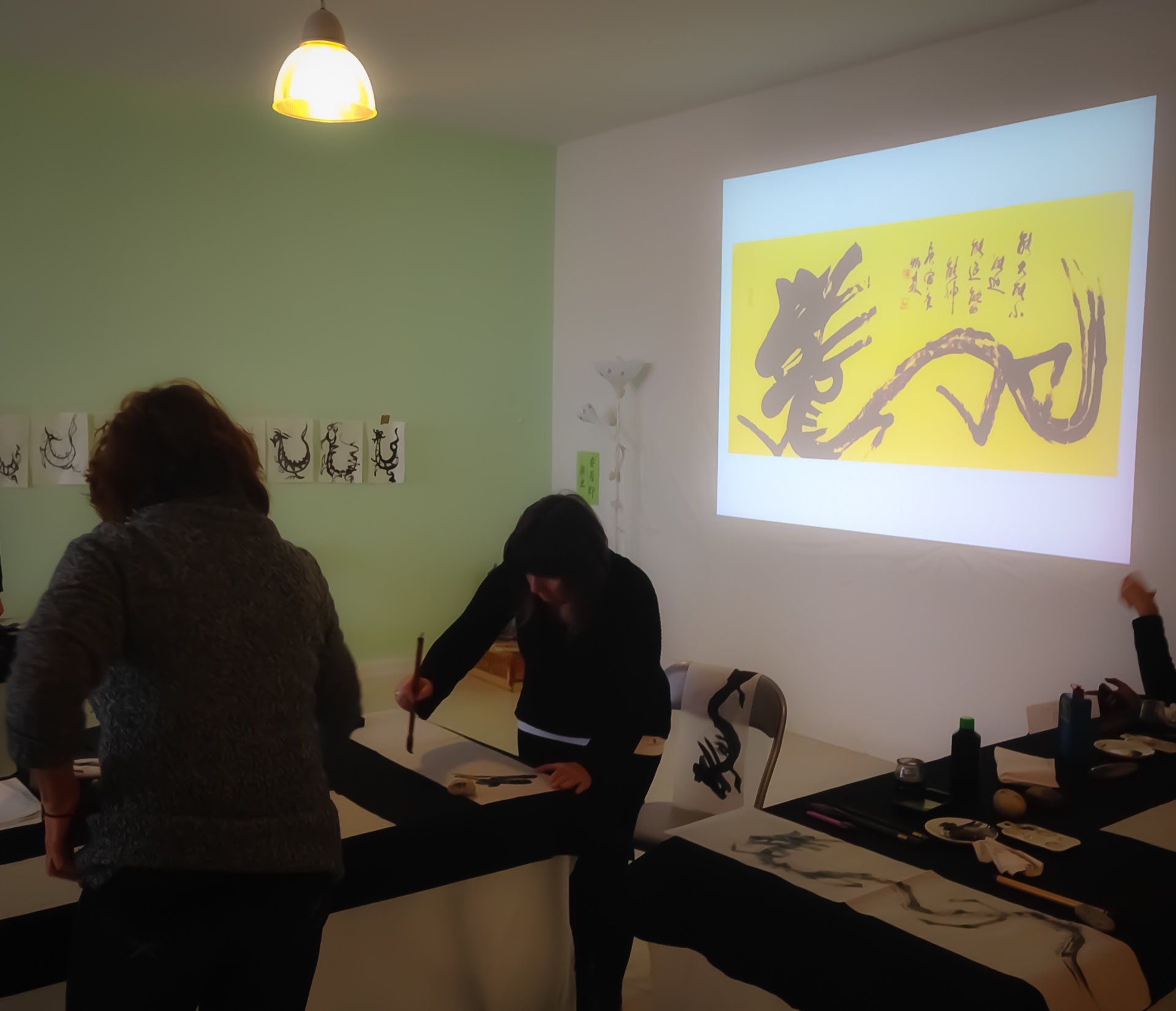 Está estructurado en cuatro módulos divididos en dos días, y en cada uno de ellos trabajamos simultáneamente caligrafía y pintura. Al comenzar cada día de trabajo realizamos una proyección de imágenes con las cuales los alumnos pueden acercarse al conocimiento de diferentes estilos de representaciones y variados modos de escrituras del kanji del dragón. Estas proyecciones aparecen en varias ocasiones durante el curso como una útil y divertida estrategia de aprendizaje. Las propuestas incluyen también la utilización de diversos tipos de papeles de fibras vegetales, el trabajo individual y grupal, pinceles de diferentes tamaños y la posibilidad de utilizar nuestro cuerpo como un modo de convertirnos en un verdadero dragón.