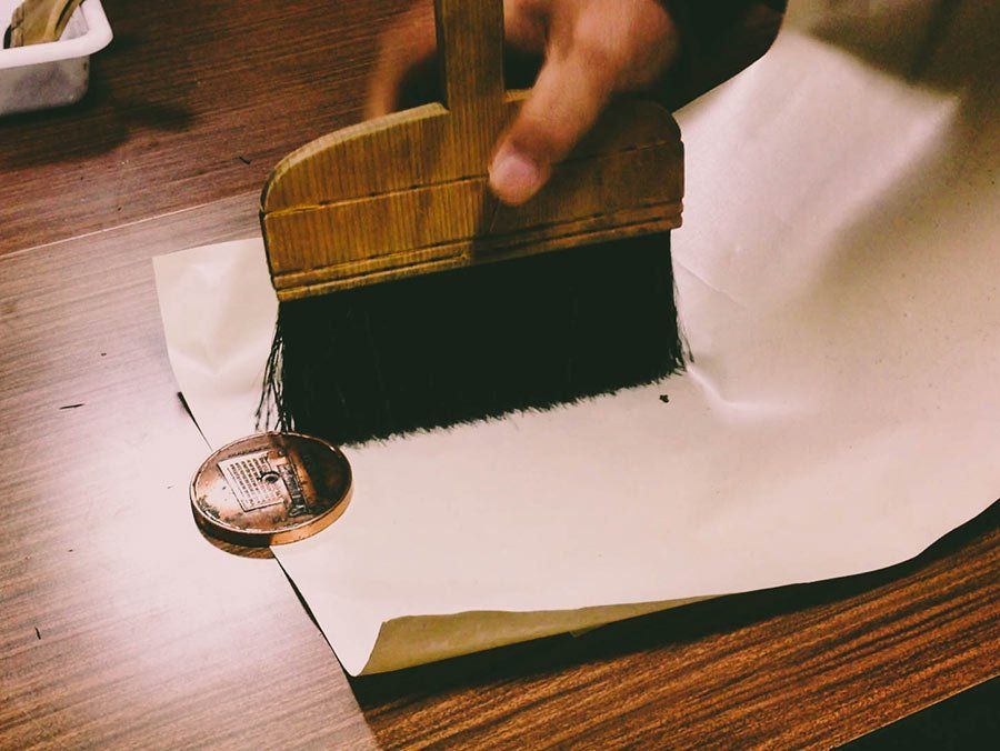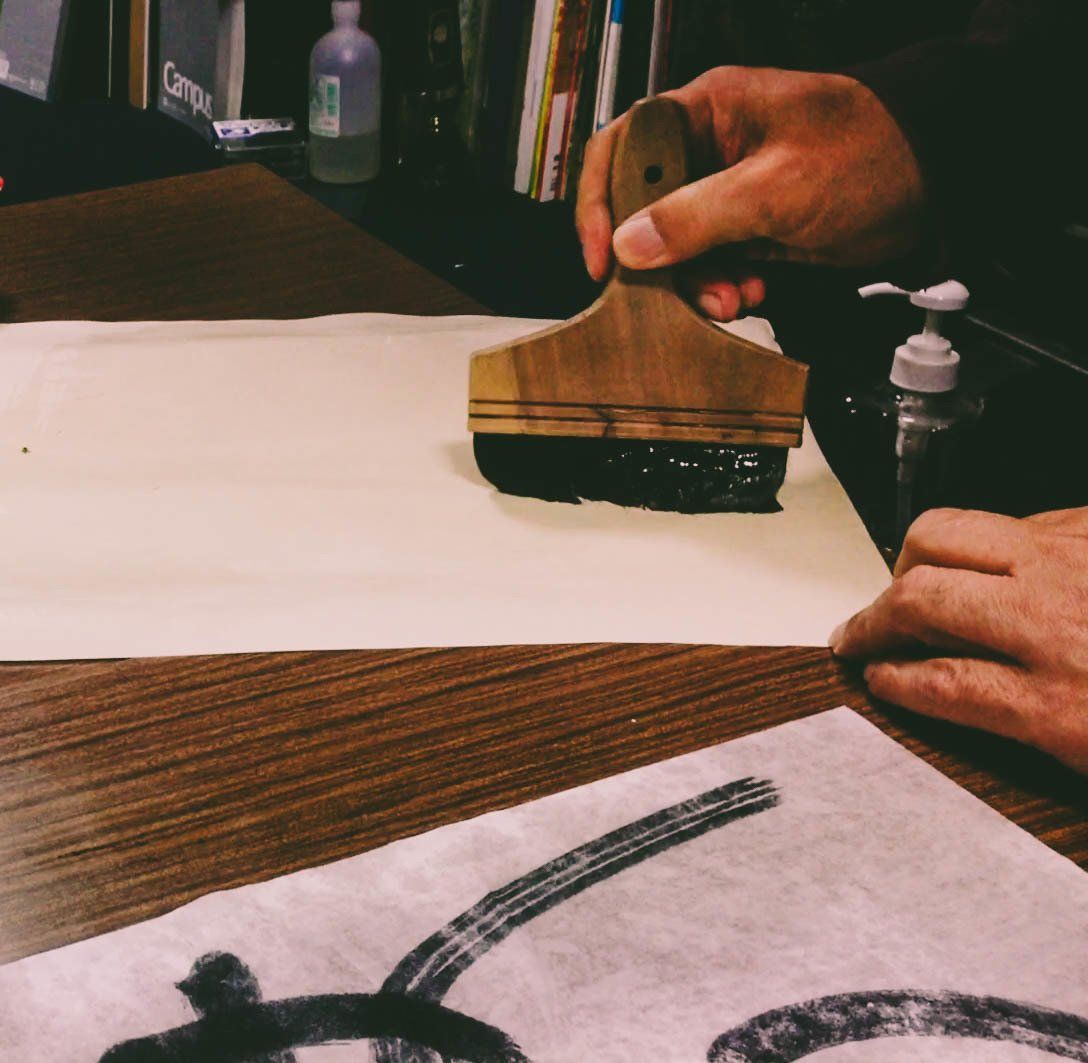 This technique consists of preparing a light paste of rice and water in specific doses and, once spread with great care on a paper thicker than the piece to be framed, previously moistened and stretched with very little vaporized water aided by several brushes (noribake) of different bristles, would achieve after gluing both papers and after a day of drying on a piece of wood, that the work would lose all wrinkles caused naturally by the trace of ink on the fine paper of vegetable fibers, and that, in addition, would give it consistency and durability. And to complete this valuable learning, they also told us about another technique to carry out the same purpose, but which in this case uses an alternative treatment, faster and in accordance with contemporary demands. This other type of urauchi is made with a type of paper provided on one of its sides with a substance that reacts to high temperatures. With just the heat of a clothes iron, and making sure that the gestures are always from the inside to the outside of the paper, you can obtain a similar result with fewer steps.