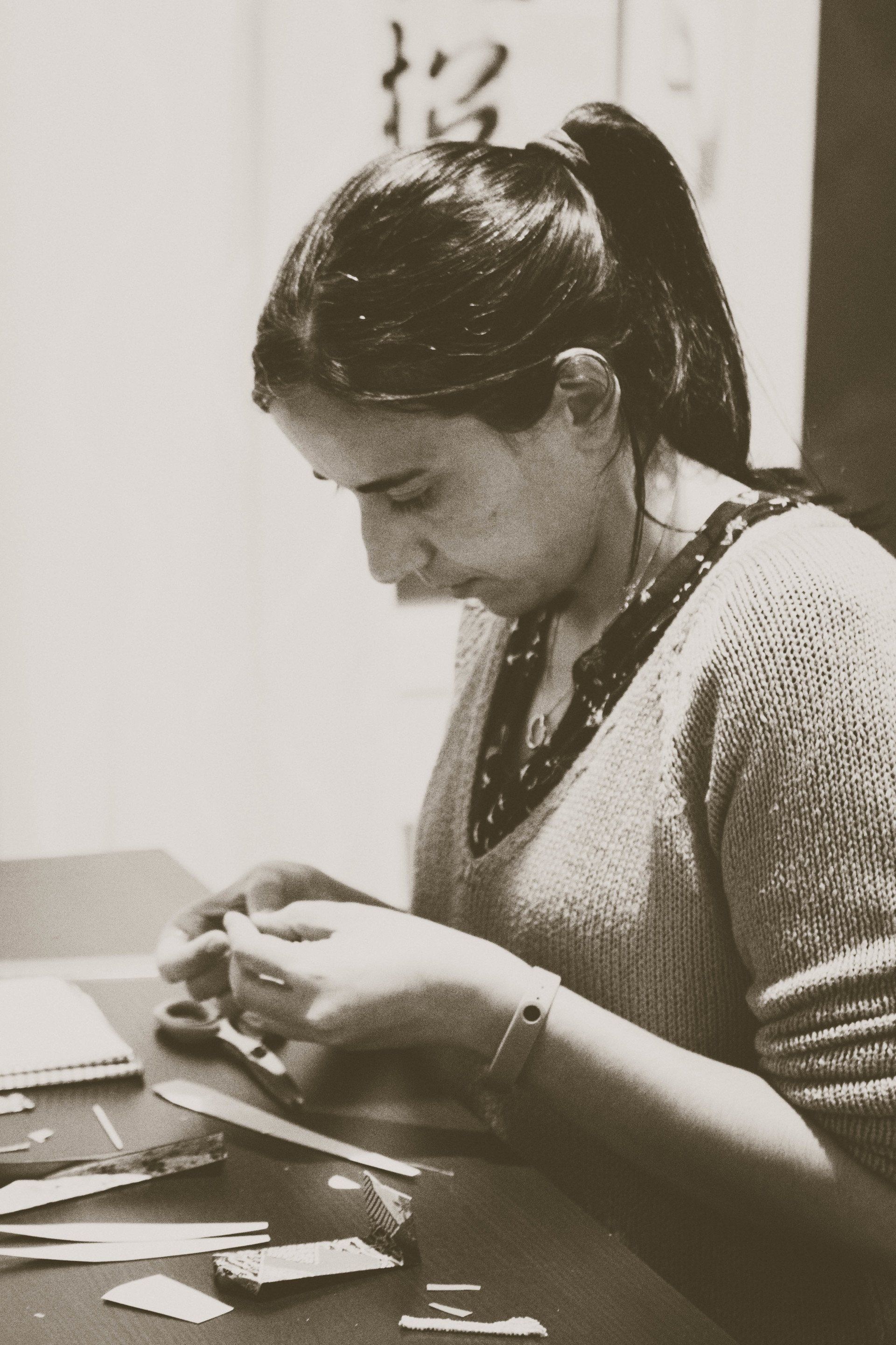 Carolina Esteban is a Washi Heart (Madrid, 1983, Spain). She came into contact with the Japanese world through origami when she was a child, a practice that she has continued in her life until today. The year 2013 would be a decisive date since two relevant events coincided for the teaching activity that she is currently engaged in. On the one hand, she discovered Japanese calligraphy through Shodo Creativo, with whom she continues to study today; and also, she heard for the first time about mizuhiki knots (rolled washi paper threads). Both disciplines have become her great passion. During the last few years she has consolidated her knowledge about this practice thanks to her trips to Japan, a place where this traditional practice is on the verge of extinction and therefore her contribution to Shodo Creativo and the dissemination of mizuhiki in Madrid in particular and in Spain in general, is invaluable. One of her current lines of research is the creation of origami pieces combined with mizuhiki knots and Japanese paper decoration techniques.