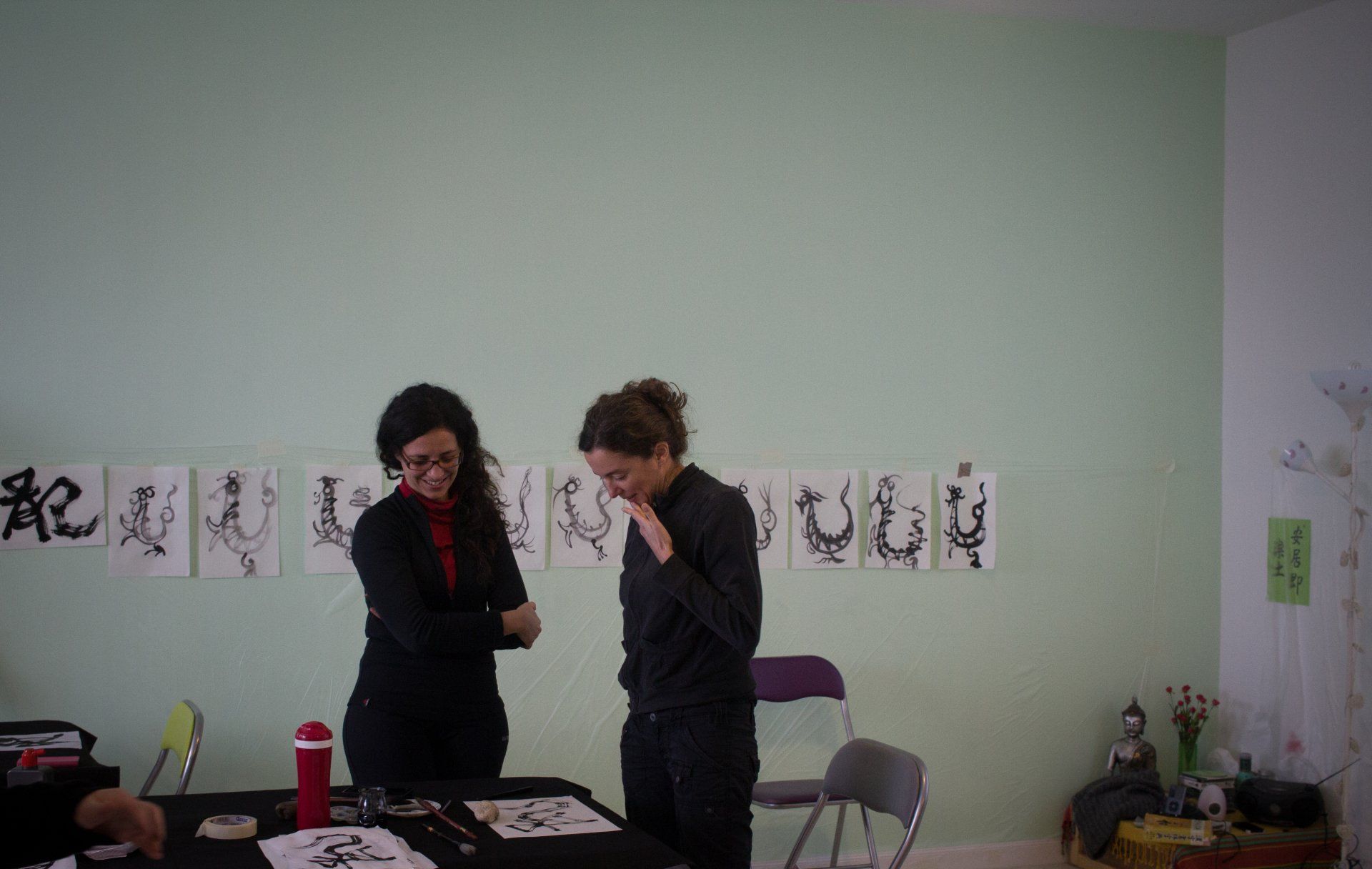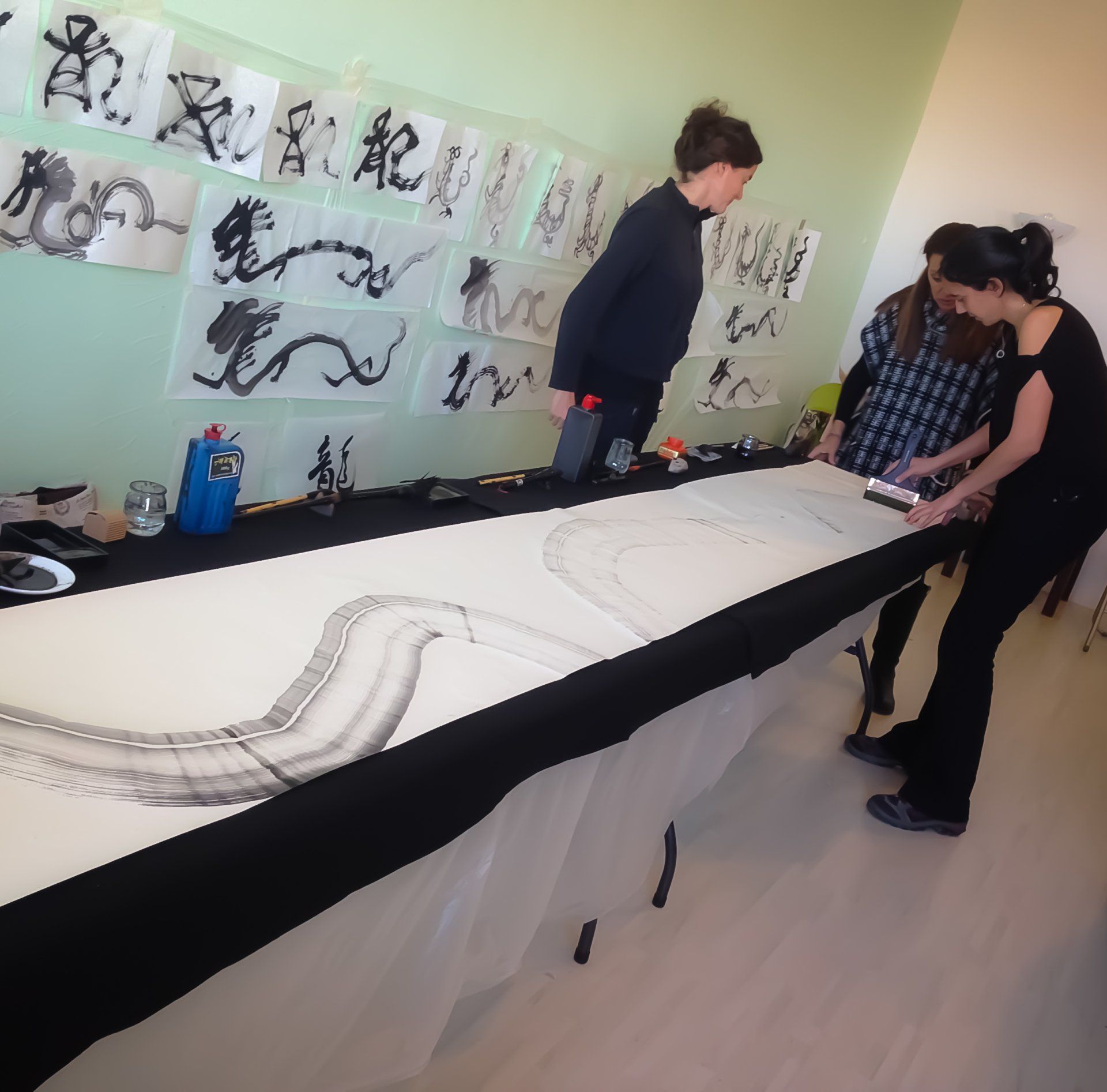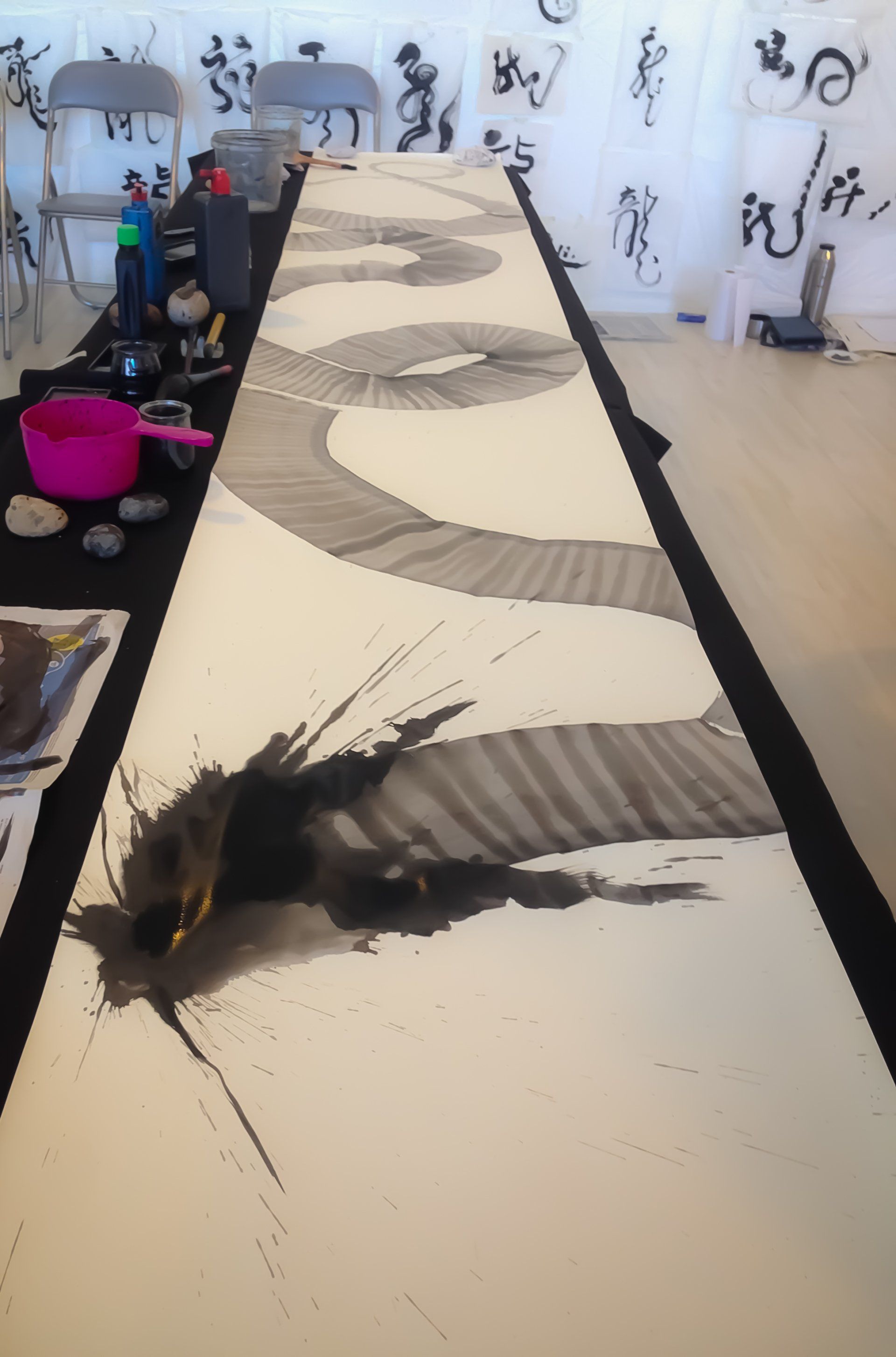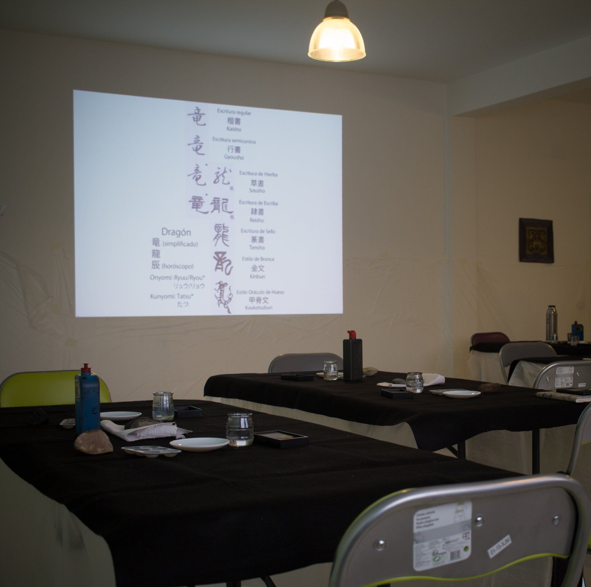 "From Dragon to Dragon" is a course designed especially for intermediate and advanced students in the field of Japanese painting and calligraphy. Its main objective is to work on the dialogue between the different historical styles of the dragon kanji (竜, 龍, 辰) and its transformation towards a more pictorial representation, which leads to the use of loose, spontaneous and generous gestures that may arise during the proposed activities. It is structured in four modules divided into two days, and in each of them we work simultaneously on calligraphy and painting. At the beginning of each work day we make a projection of images with which the students can approach the knowledge of different styles of representations and various ways of writing the dragon kanji. These projections appear on several occasions during the course as a useful and fun learning strategy. The proposals also include the use of different types of papers made of vegetable fibers, individual and group work, brushes of different sizes and the possibility of using our body as a way of becoming a real dragon.