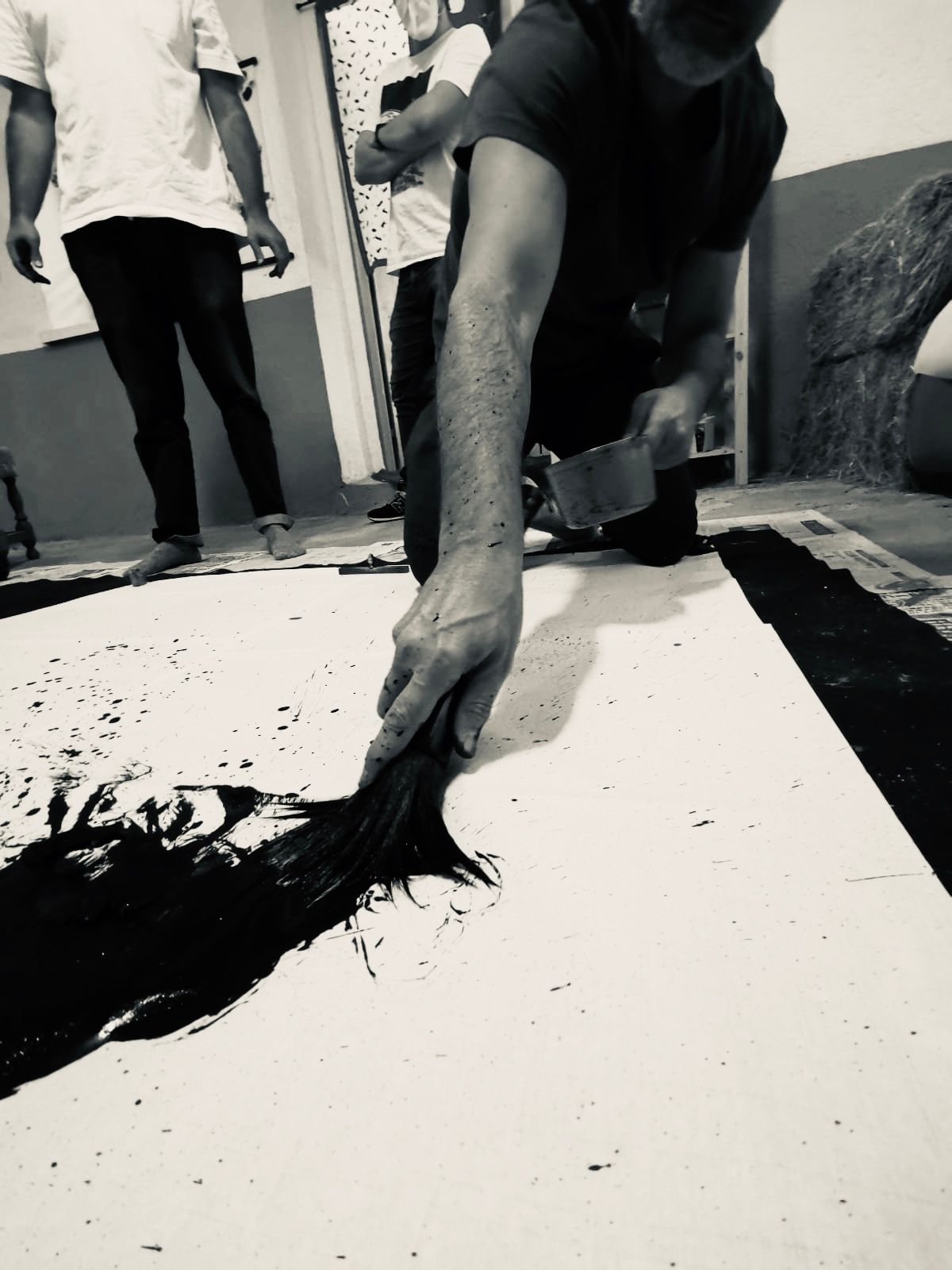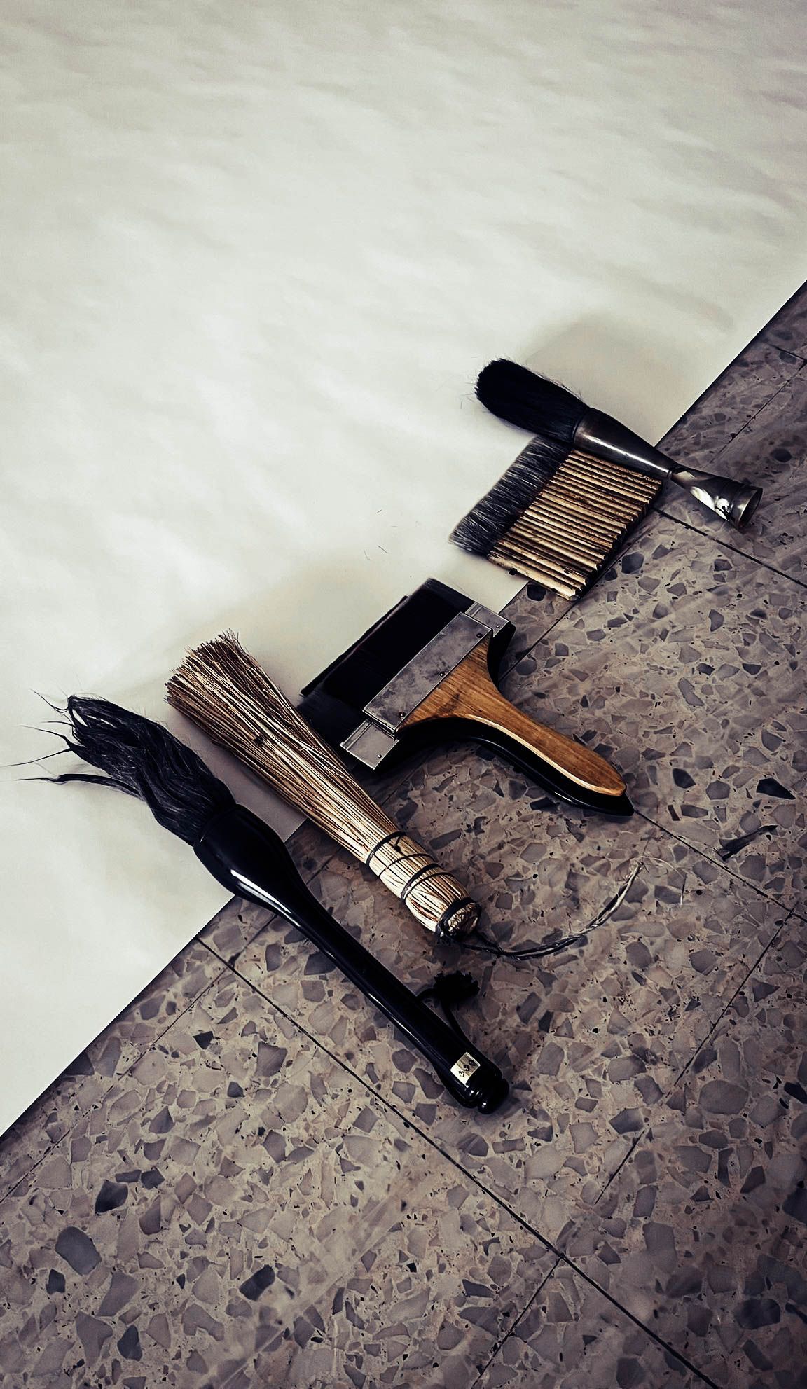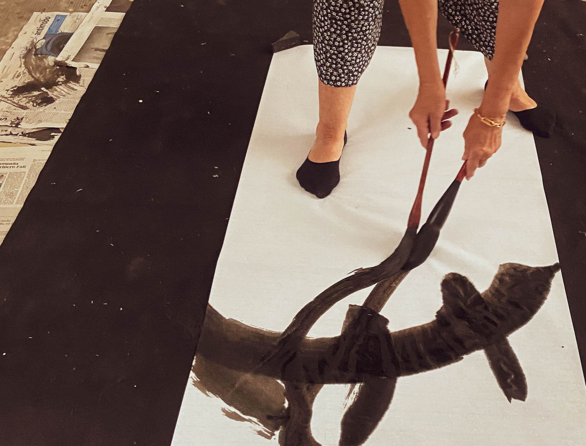 In these workshops we show how to hold the brush, compositional strategies in large dimensions, selection of the most appropriate materials, distribution of body weight, recognition of muscle tone and possibilities of movement with the brush in hand.