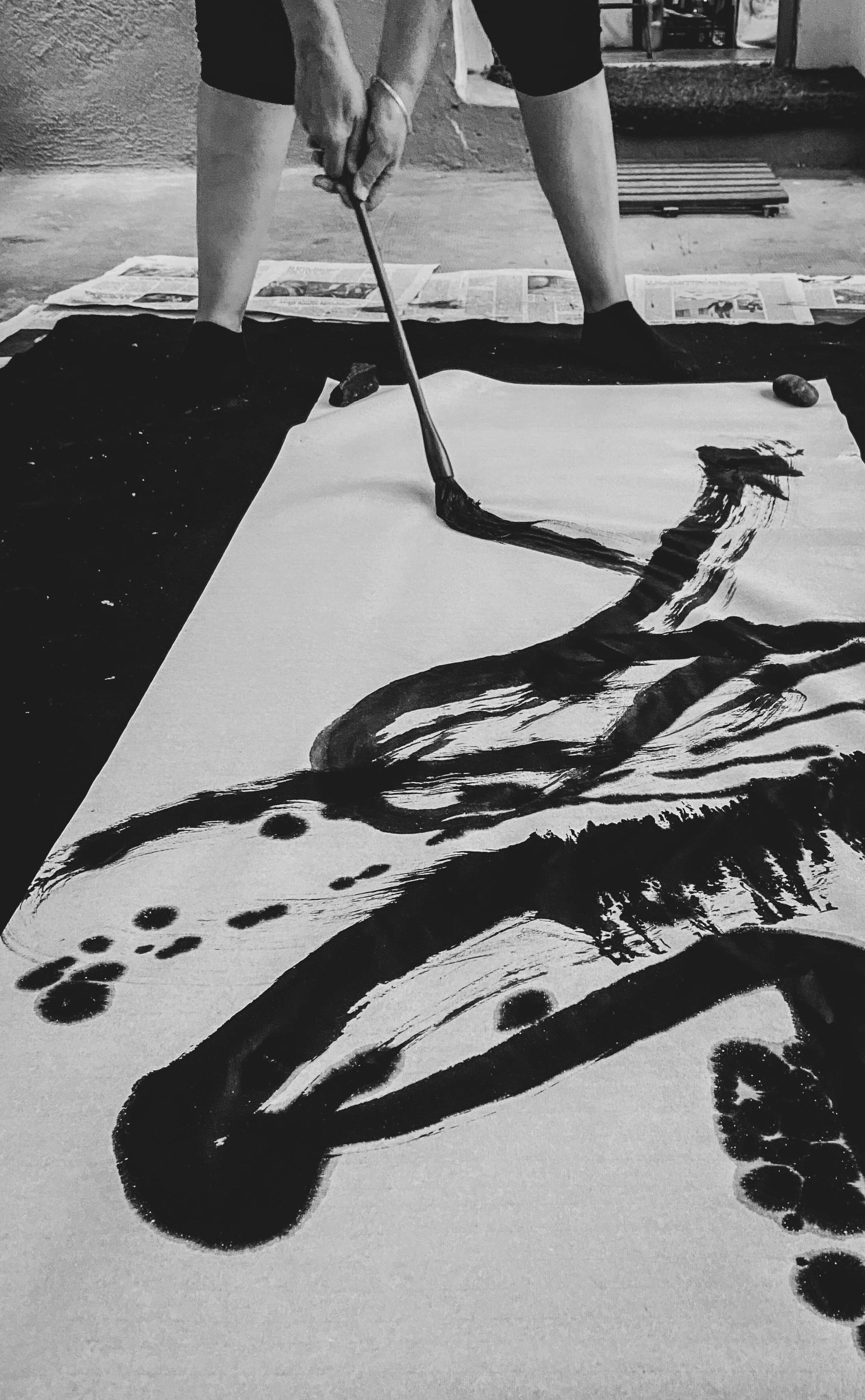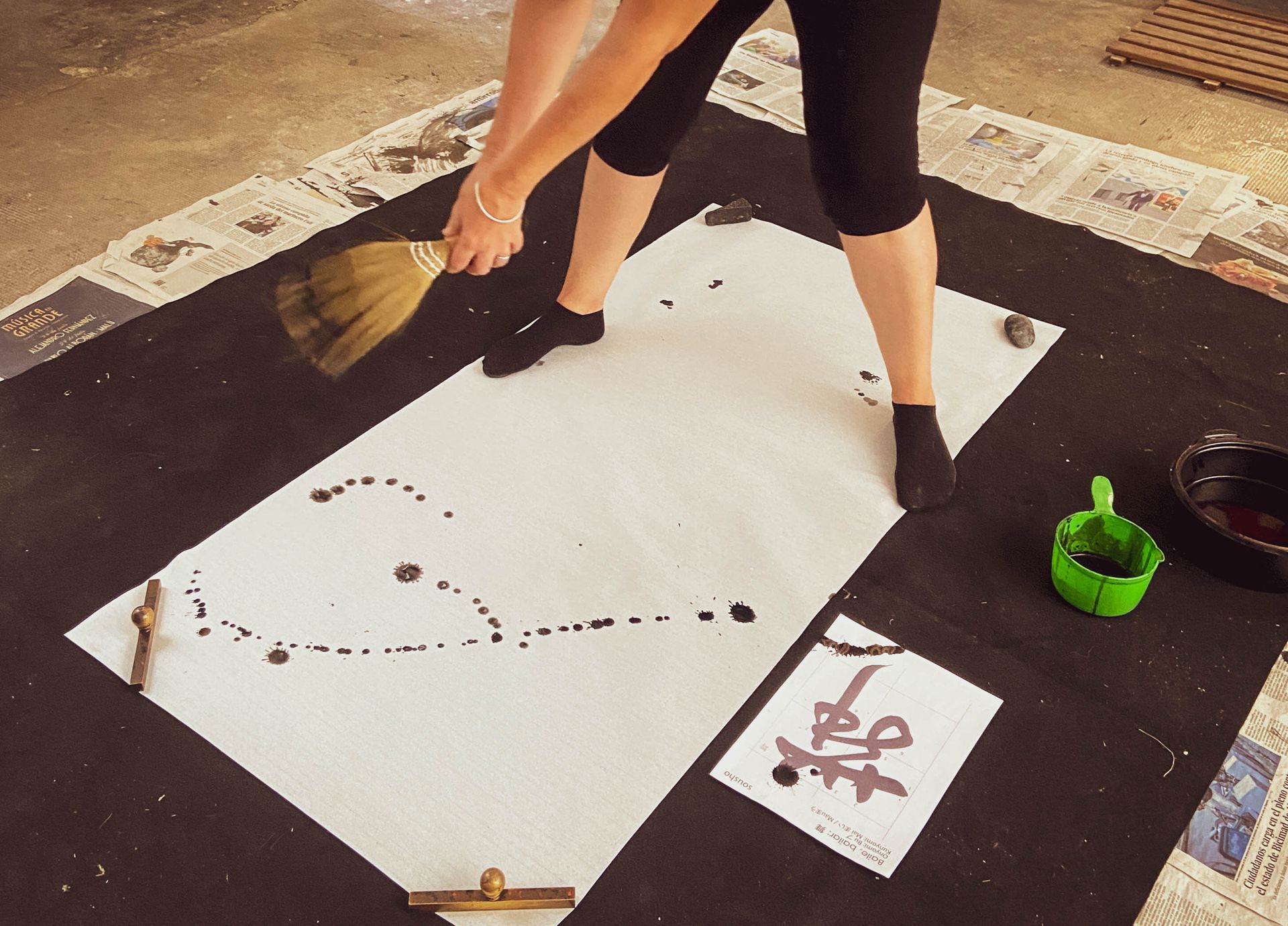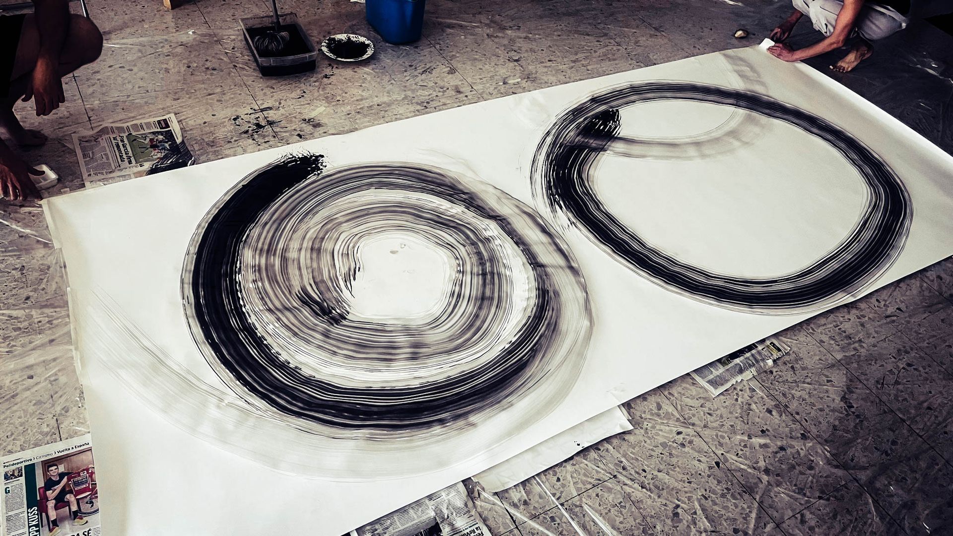 In these workshops we show how to hold the brush, compositional strategies in large dimensions, selection of the most appropriate materials, distribution of body weight, recognition of muscle tone and possibilities of movement with the brush in hand.