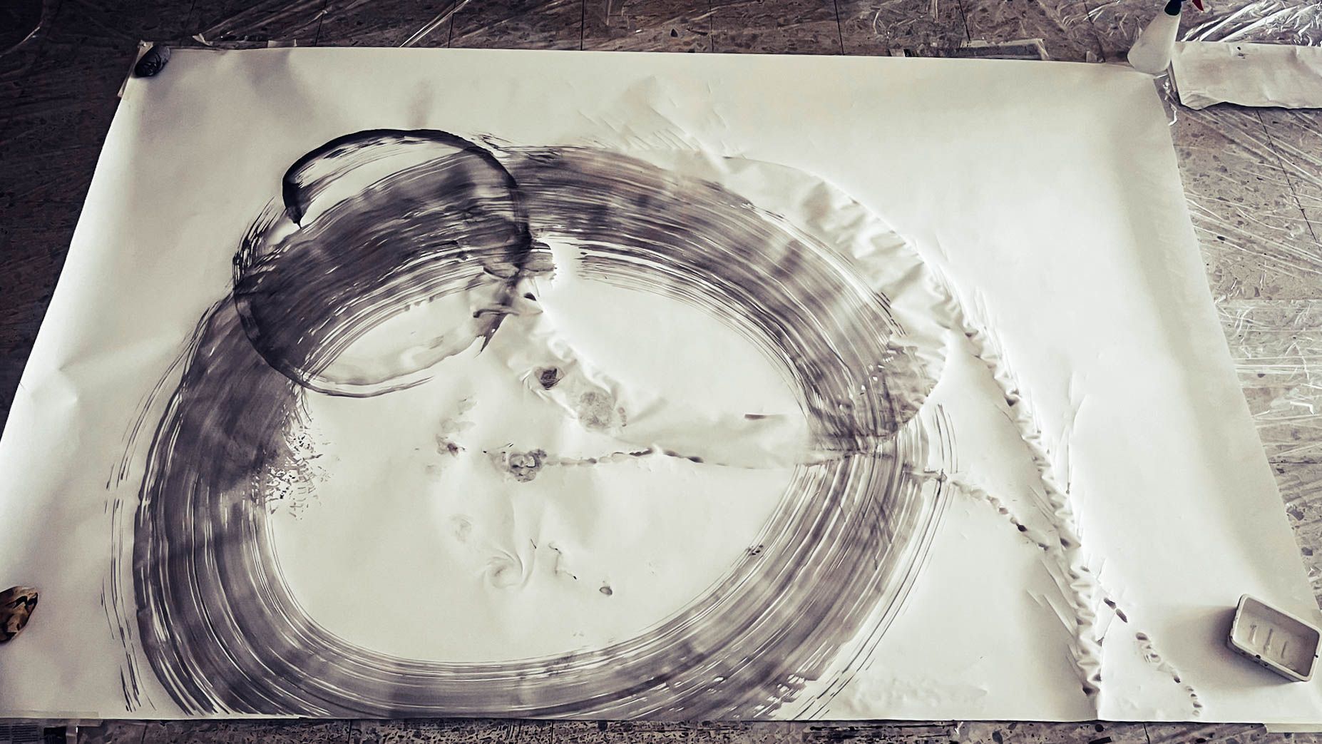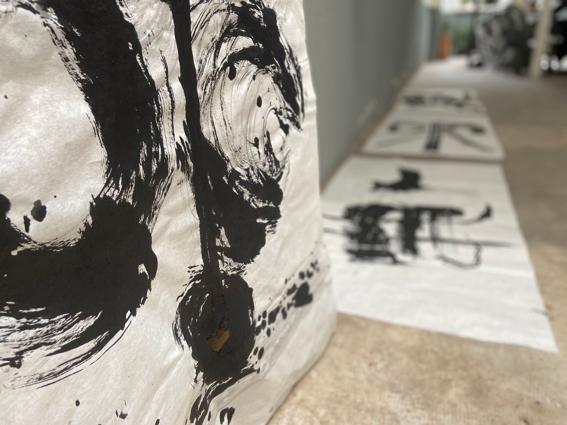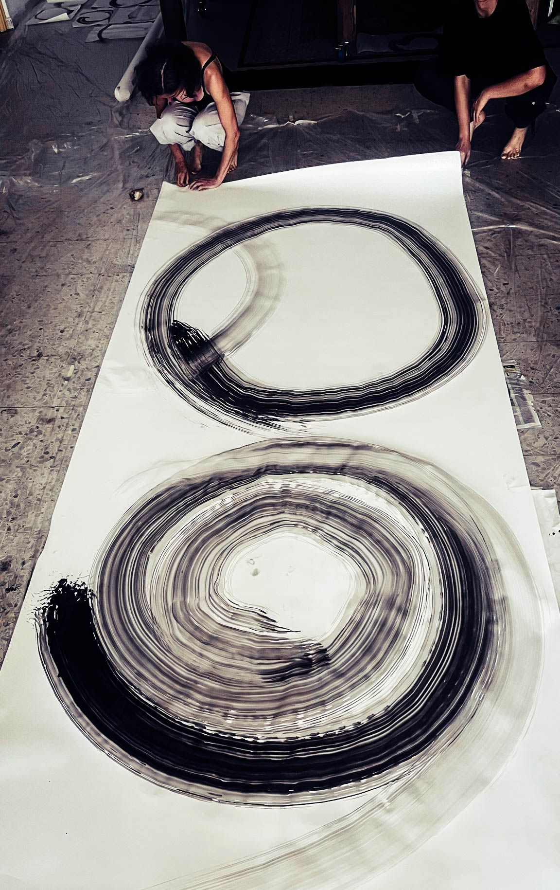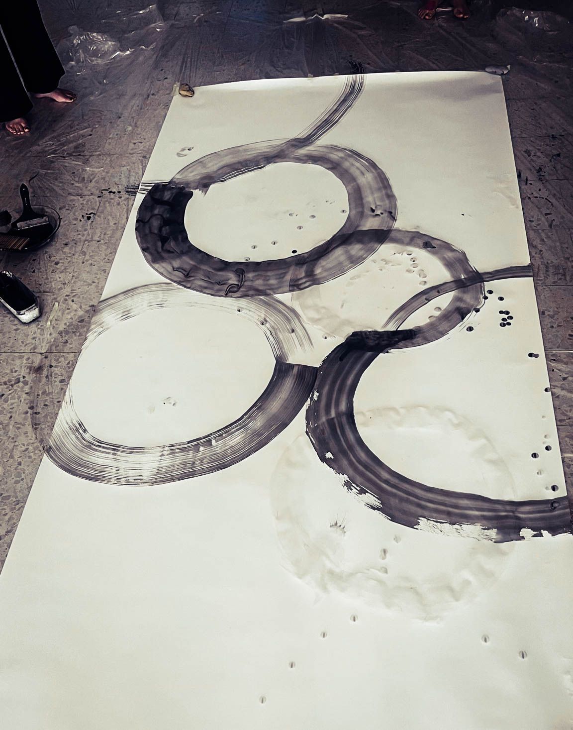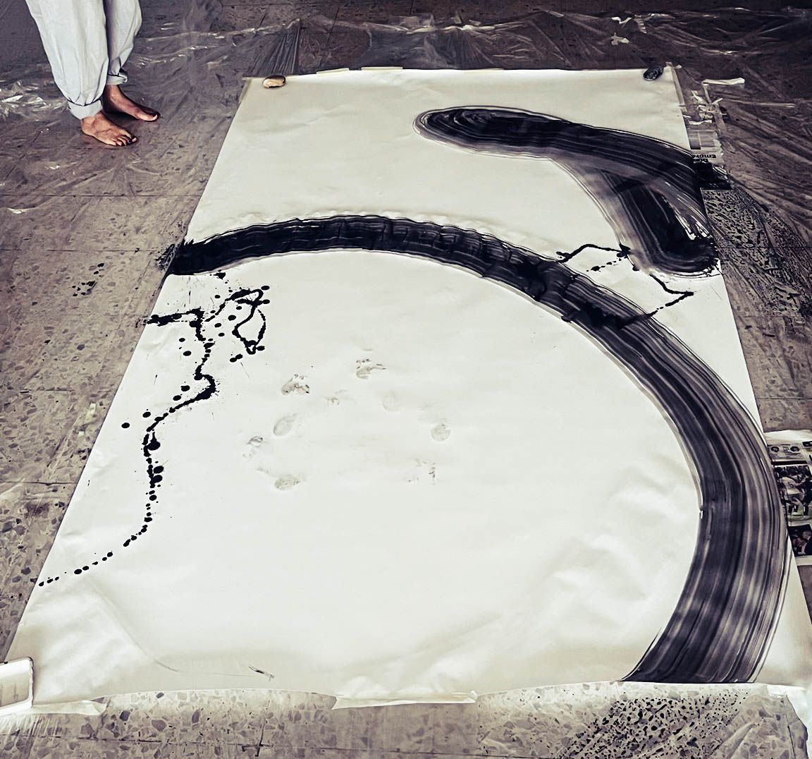 In most of our proposals we will start from small, intimate and centrifugal gestures to progressively increase the dimensions of the paper support and thus merge with the brush in a dance of gesture, impulse and stroke.