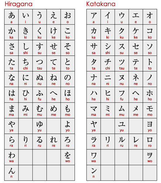 Kana 仮名 in Japanese means "syllabary." Each character represents a syllable (unlike alphabets where each character is a letter that then forms syllables). These syllables -like letters- only have phonetic value (sounds) as opposed to kanji -taken from Chinese writing- which have phonetic value and meaning. Perhaps this is the main difference between Chinese and Japanese writing. While the former only uses kanji characters (with sound and meaning), Japanese adds kana to the kanji. Kana consists of forty-six syllabic characters: forty syllables, five vowels and the letter "n." It has two forms: hiragana 平仮名 and katakana 片仮名. Both have the same pronunciation but are written with different characters and are used for different things. Hiragana has soft and curved character shapes. It is so Japanese that it is used to write words of Japanese phonetic origin, to indicate the tense of a verb when used as a suffix added to kanji to indicate its mode or time (e.g. ta-beru 食べる - to eat, ta-bemashita 食べました - I ate, ta-bemasu 食べます - to eat), to write prepositions and for various other syntactical functions. Katakana has simple, straight and angular forms. It is used to write foreign words and neologisms (e.g. banana バナナ - banana, camera カメラ - kamera).