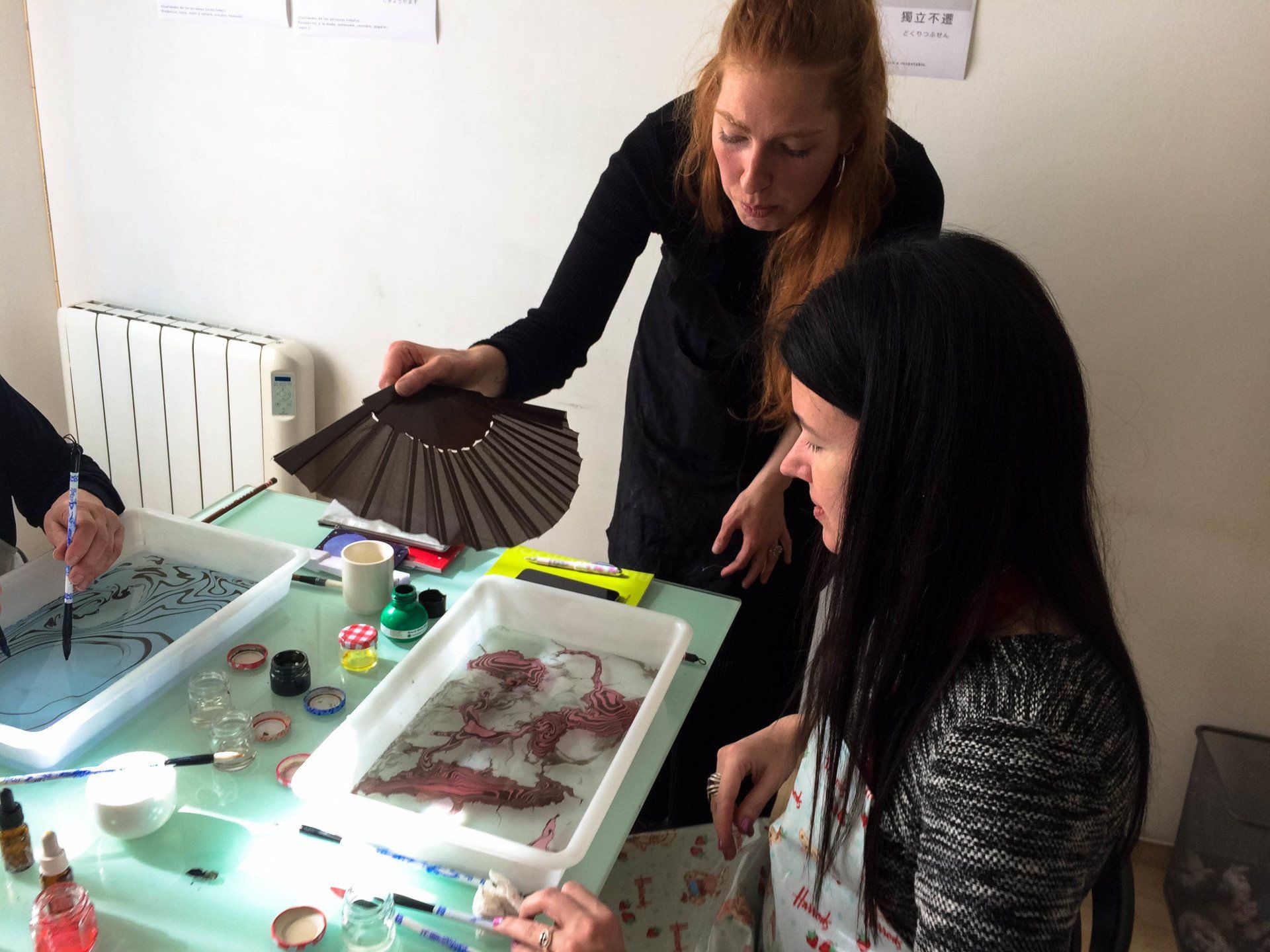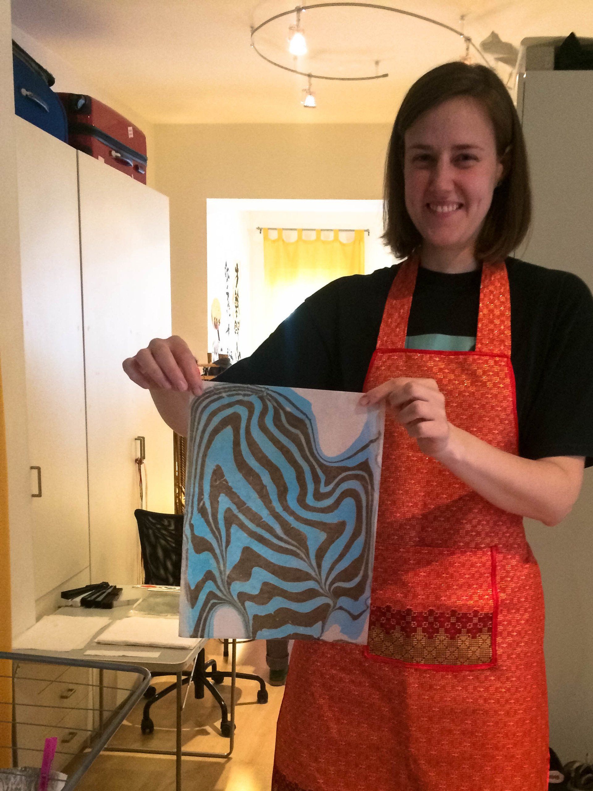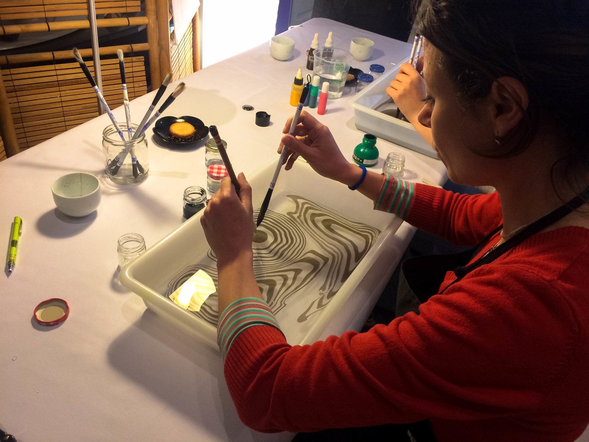 In her workshops she seeks to create spaces to let the imagination fly and awaken the creative mind through the development of textiles, papers and wood stamped with the techniques of Marbling and Suminagashi. She has taught practical workshops on Marbling and Suminagashi in different trade schools in Santiago and Valparaiso (Chile); and in Madrid and Barcelona (Spain).