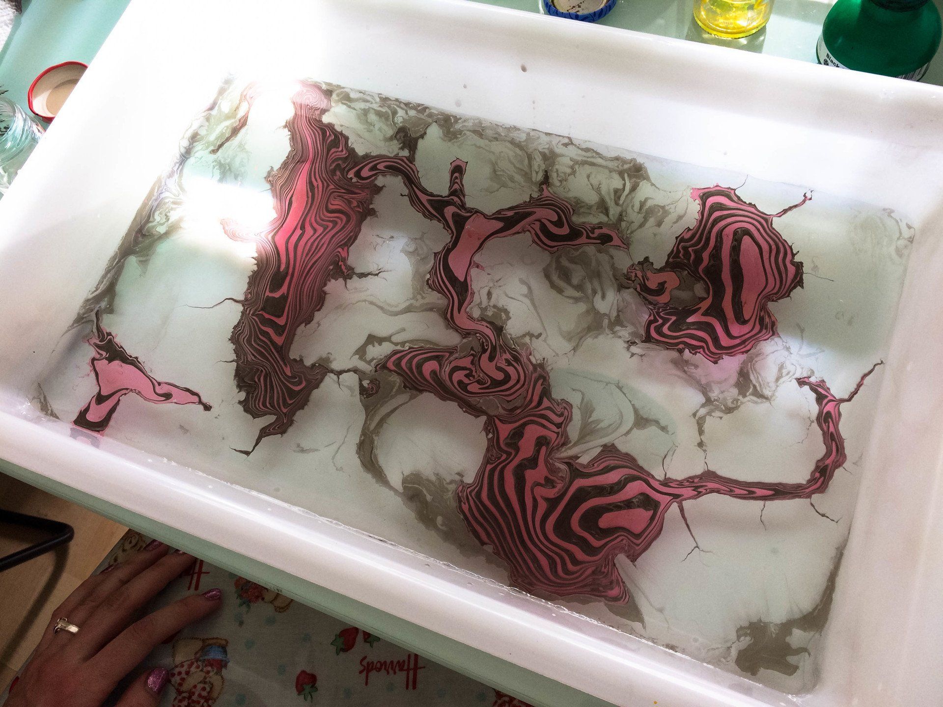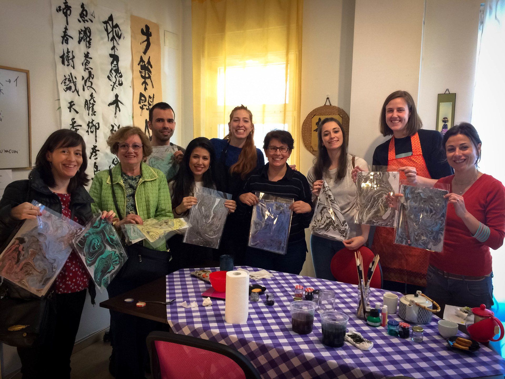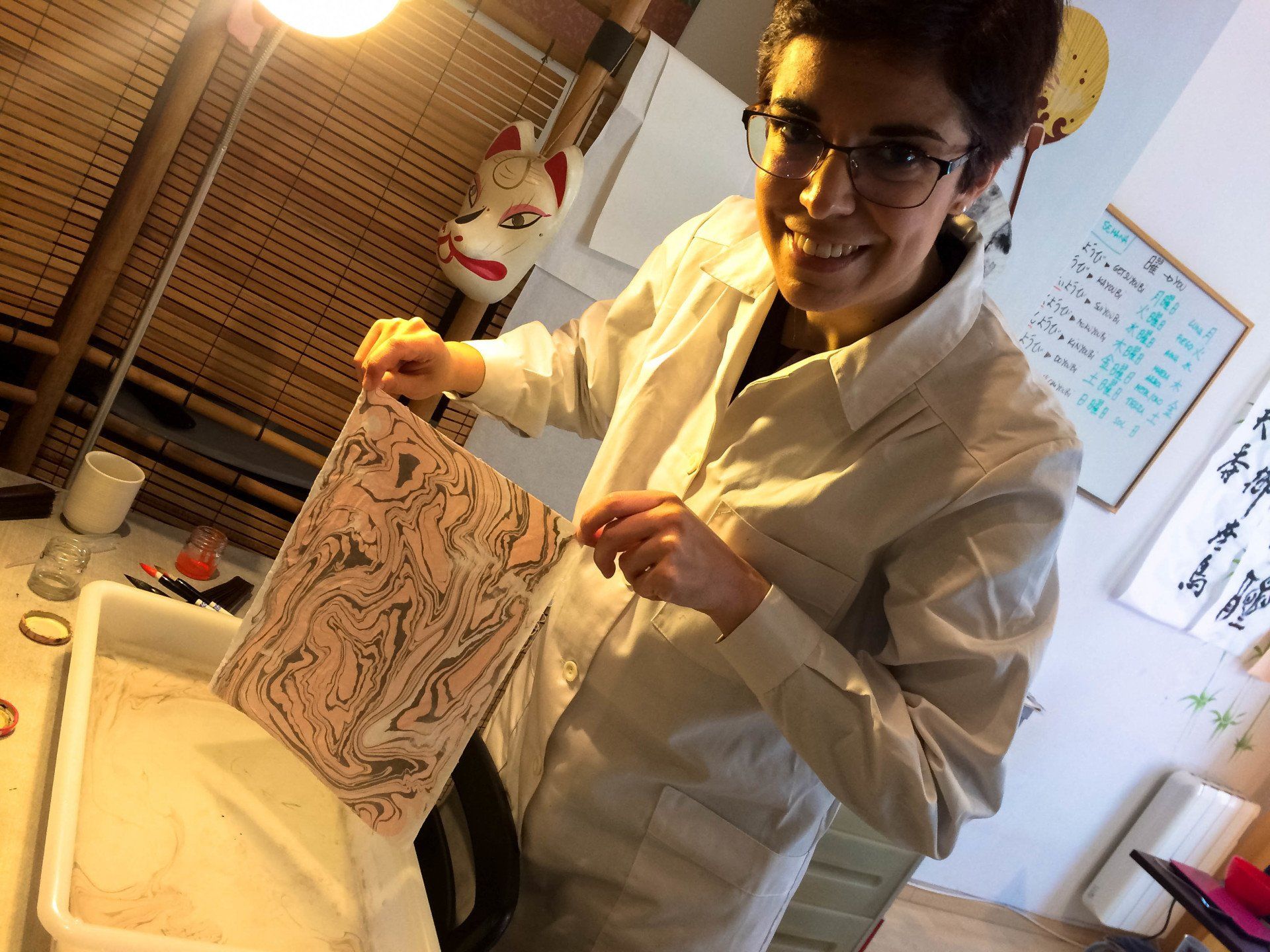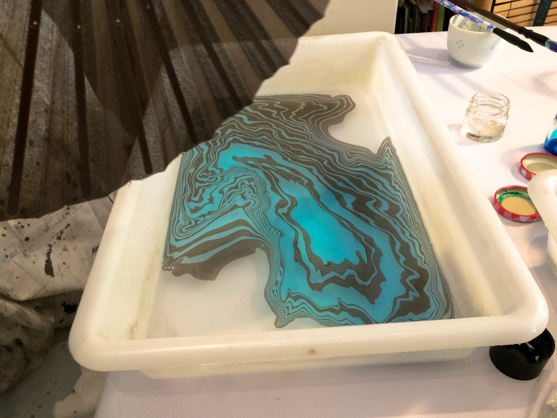 In her workshops she seeks to create spaces to let the imagination fly and awaken the creative mind through the development of textiles, papers and wood stamped with the techniques of Marbling and Suminagashi. She has taught practical workshops on Marbling and Suminagashi in different trade schools in Santiago and Valparaiso (Chile); and in Madrid and Barcelona (Spain).