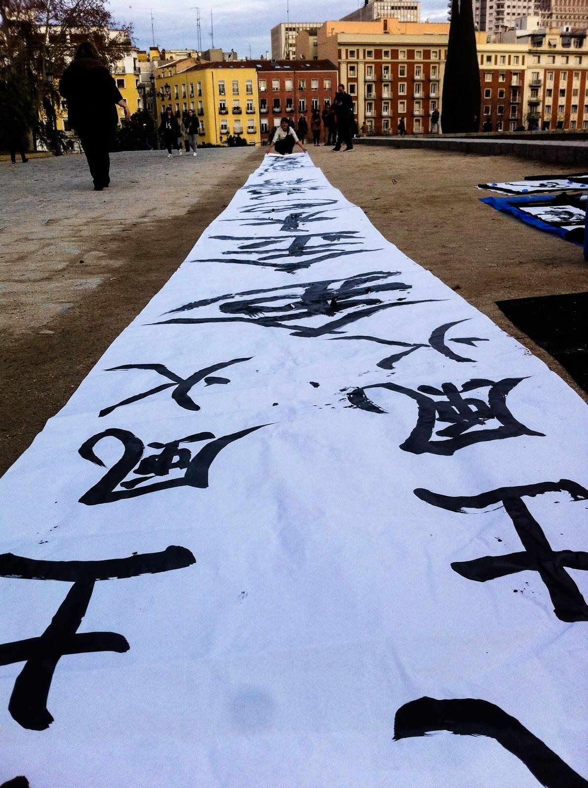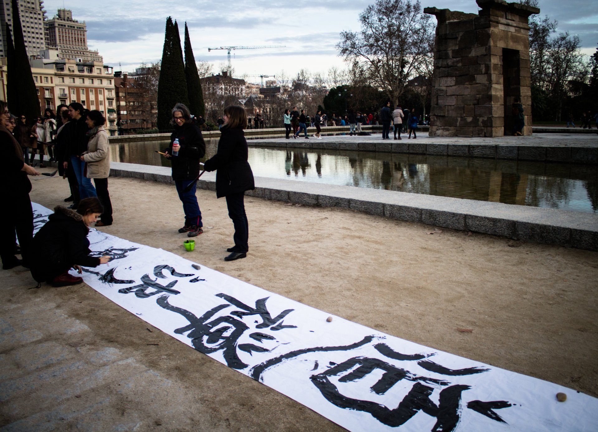 Outdoor meeting: Kakizome, the first calligraphy of the year Kakizome 書初め (lit. "the first calligraphy"), is another Japanese tradition that brings together thousands of Japanese people every year to write words of good omen and good wishes to start the year off right. These calligraphies are then burned so that they reach the kami gods, who will help us achieve our New Year's resolutions. Debod Temple, 2016 - Madrid
