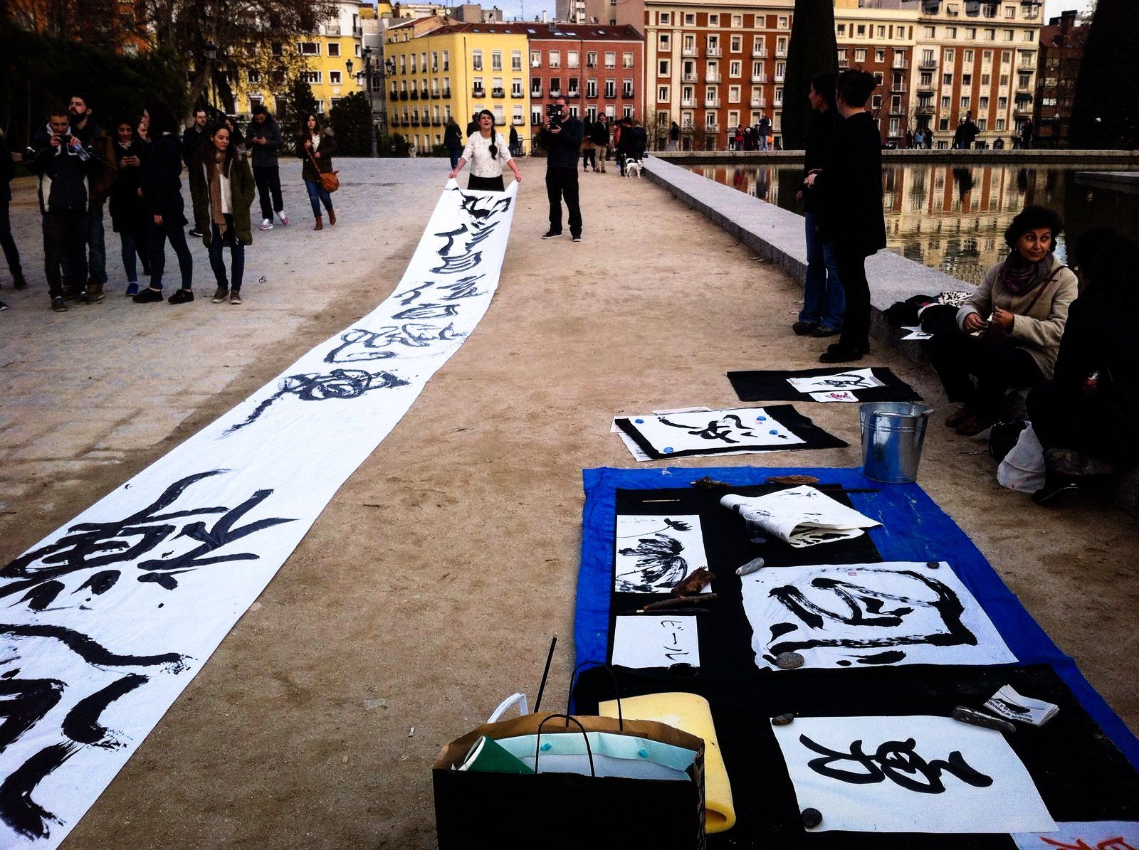 Creative Shodo - Live Japanese Art Exhibition of Japanese calligraphy, sumi-e and kakejiku. Demonstration of Kitsuke, the art of wearing a kimono. Live demonstration of Japanese calligraphy and painting. Urban Arts, 2012 - Madrid