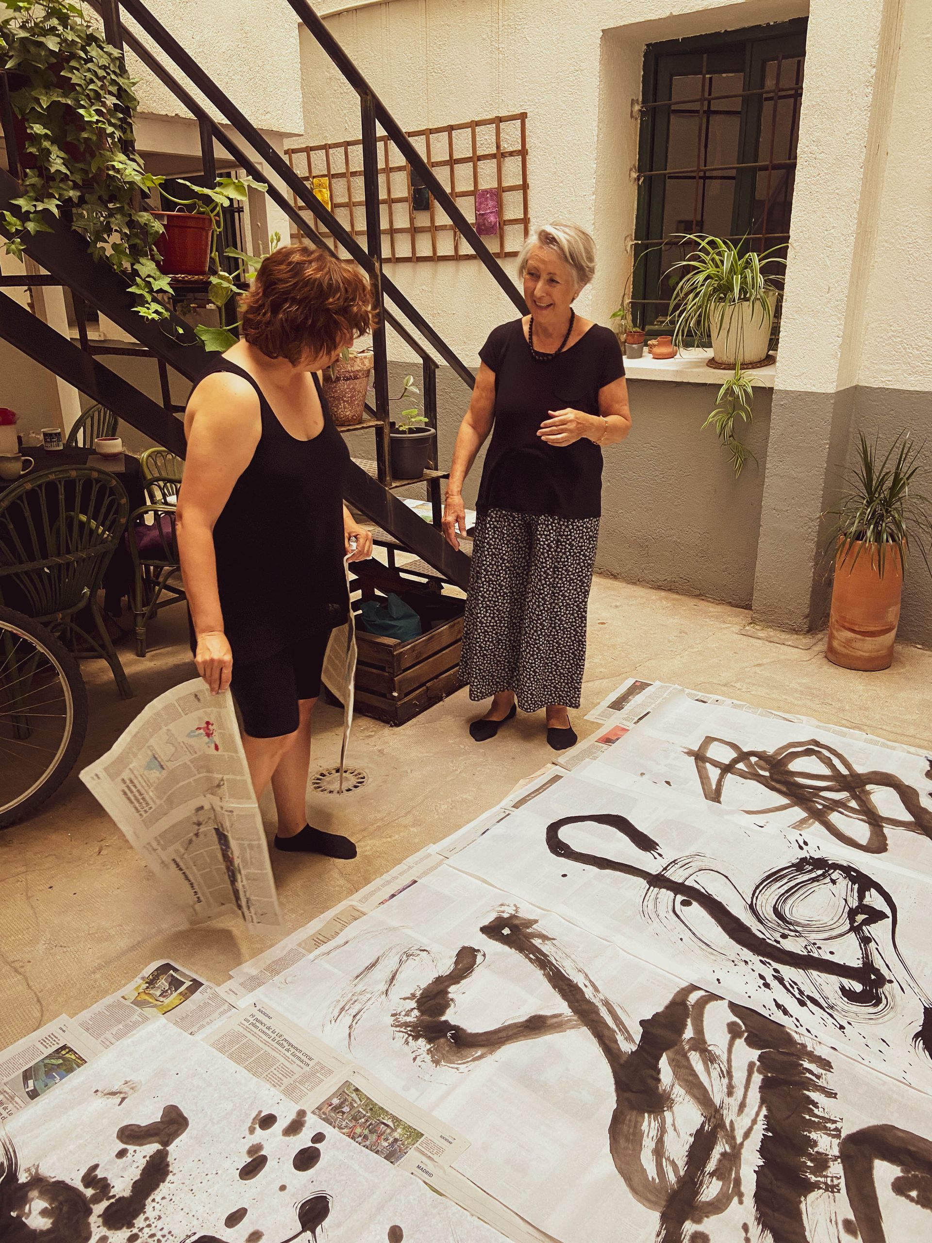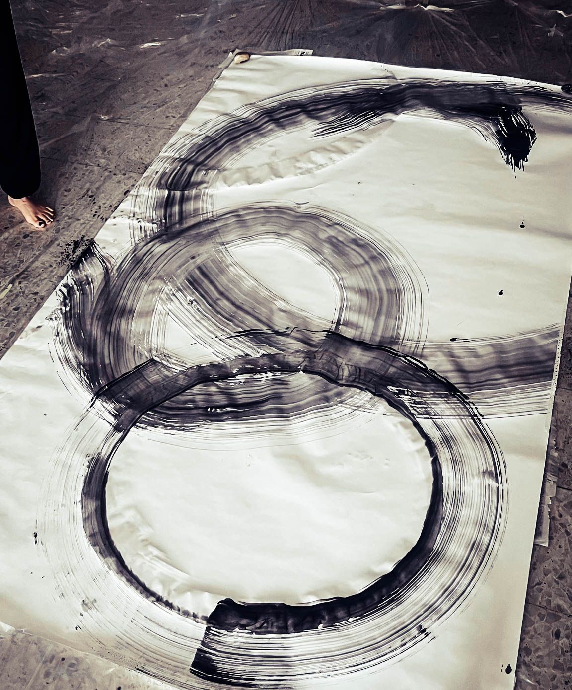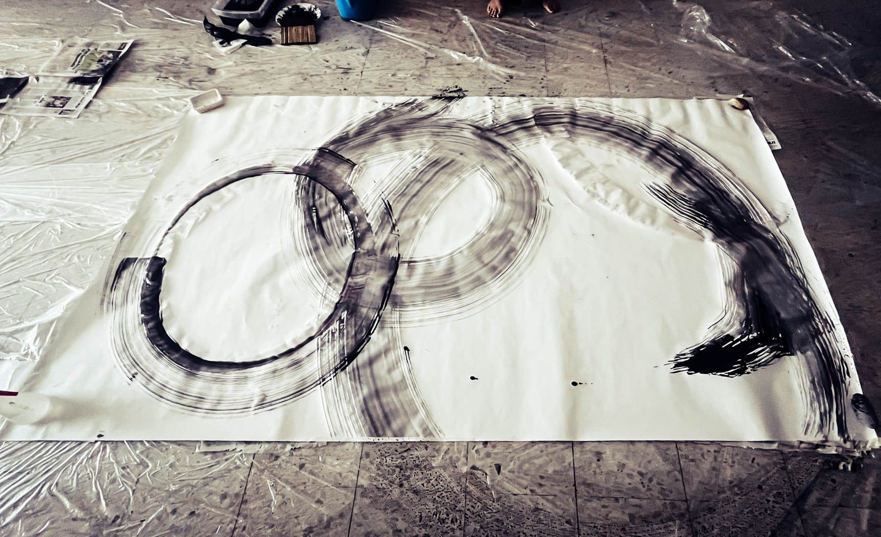 En los monográficos de SHODO y SUMI-E en GRAN FORMATO nos interesa trabajar la posibilidad de conectar con sensaciones internas para crear un acercamiento directo al movimiento que luego nos conduce al trazo.