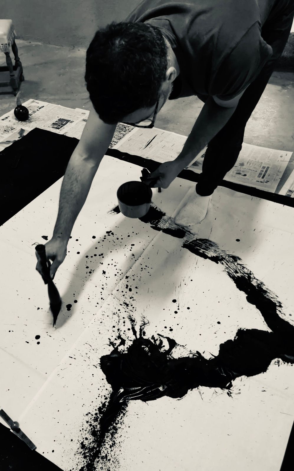 En la mayoría de nuestras propuestas partiremos de gestos pequeños, íntimos y centrífugos para, progresivamente, aumentar las dimensiones del soporte del papel y así llegar a fundirnos con el pincel en una danza del gesto, del impulso y del trazo.
