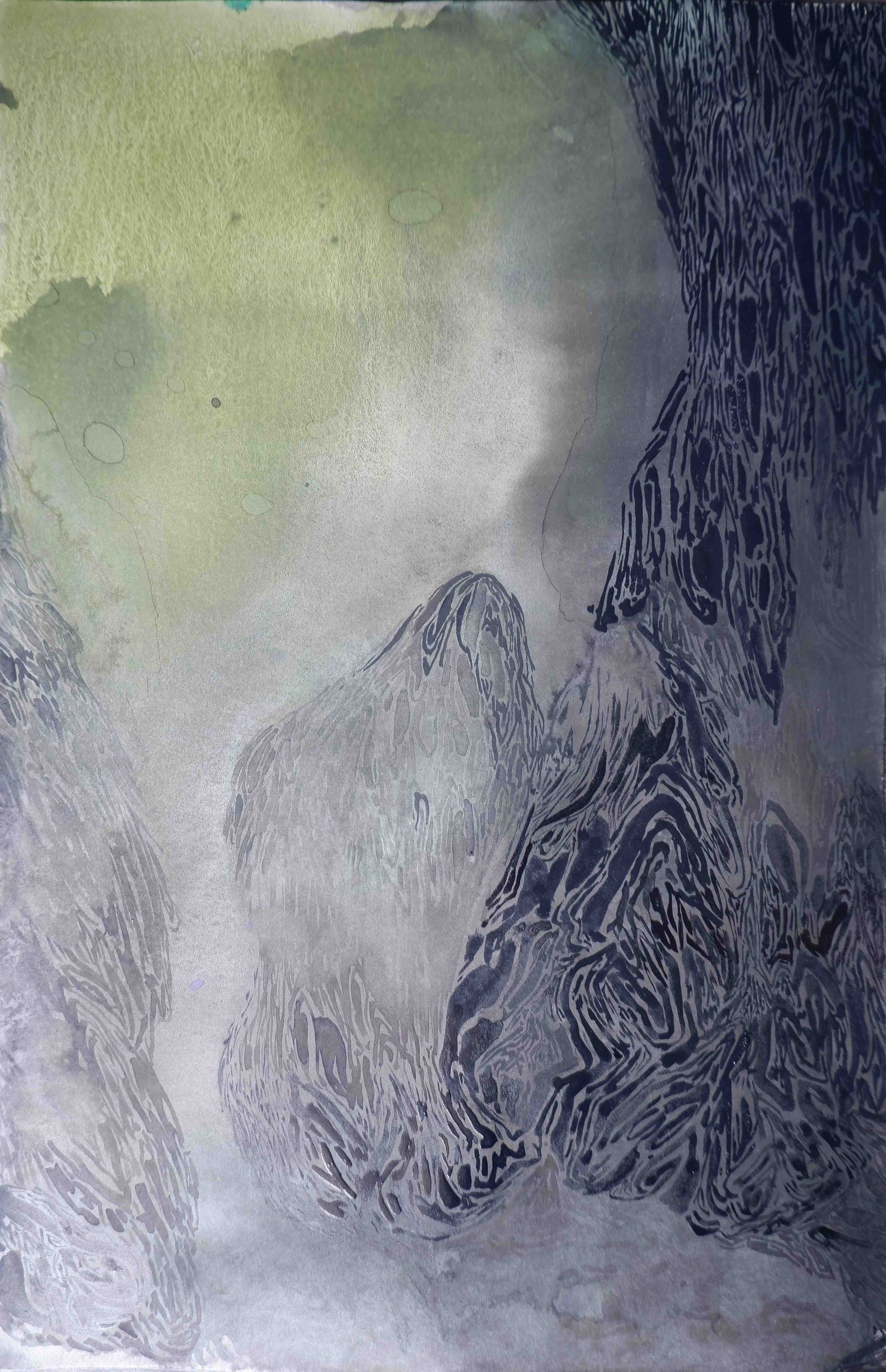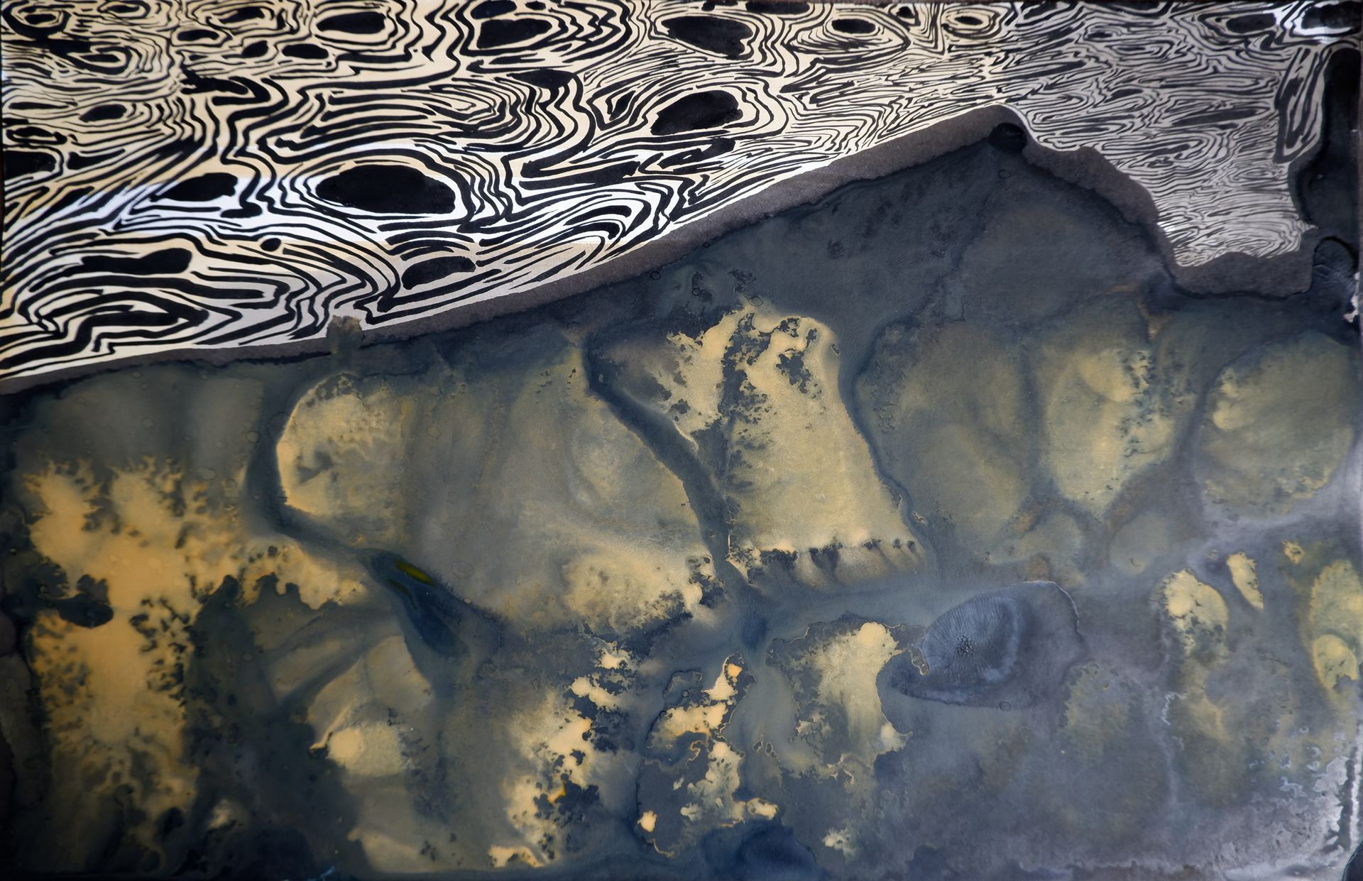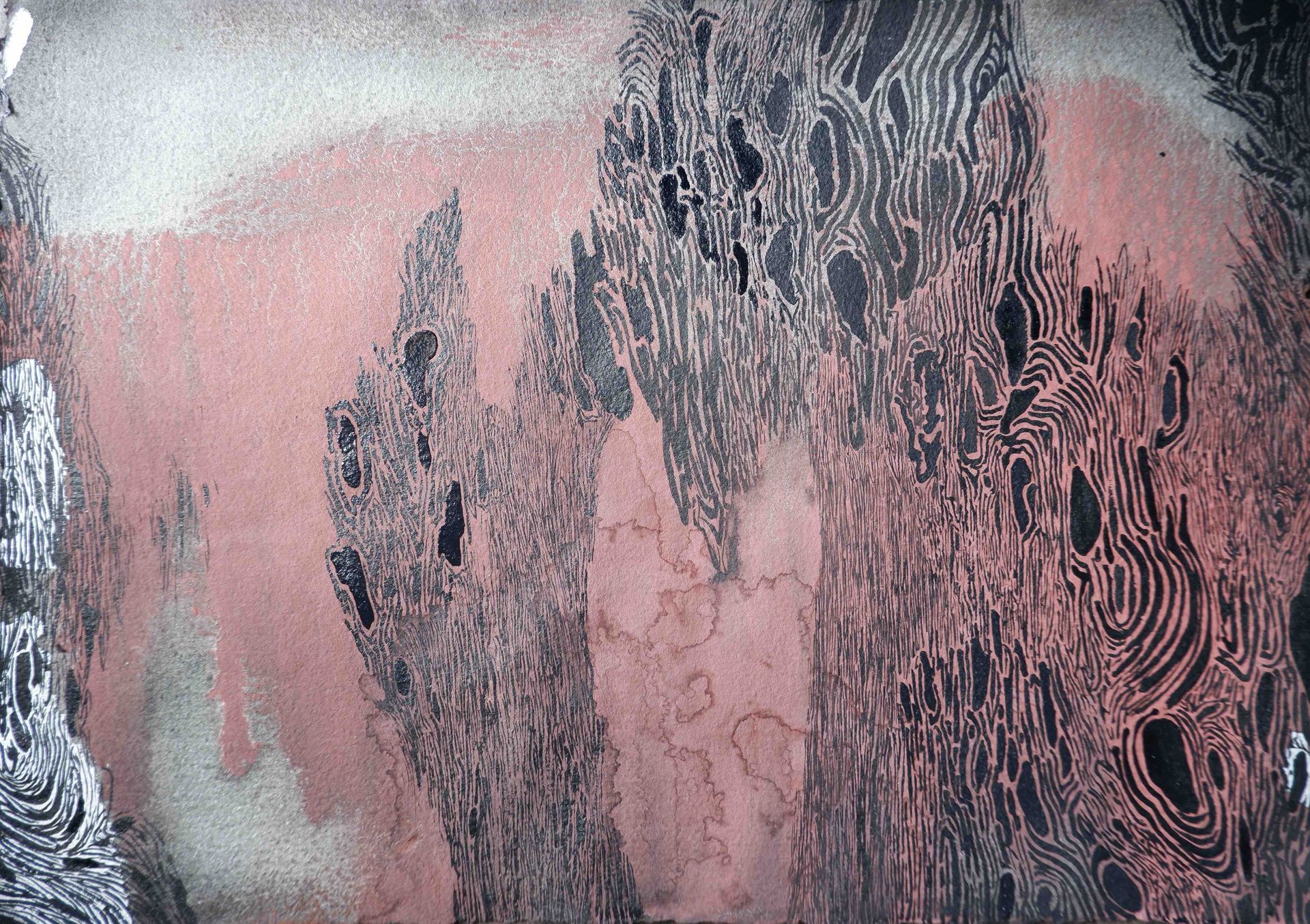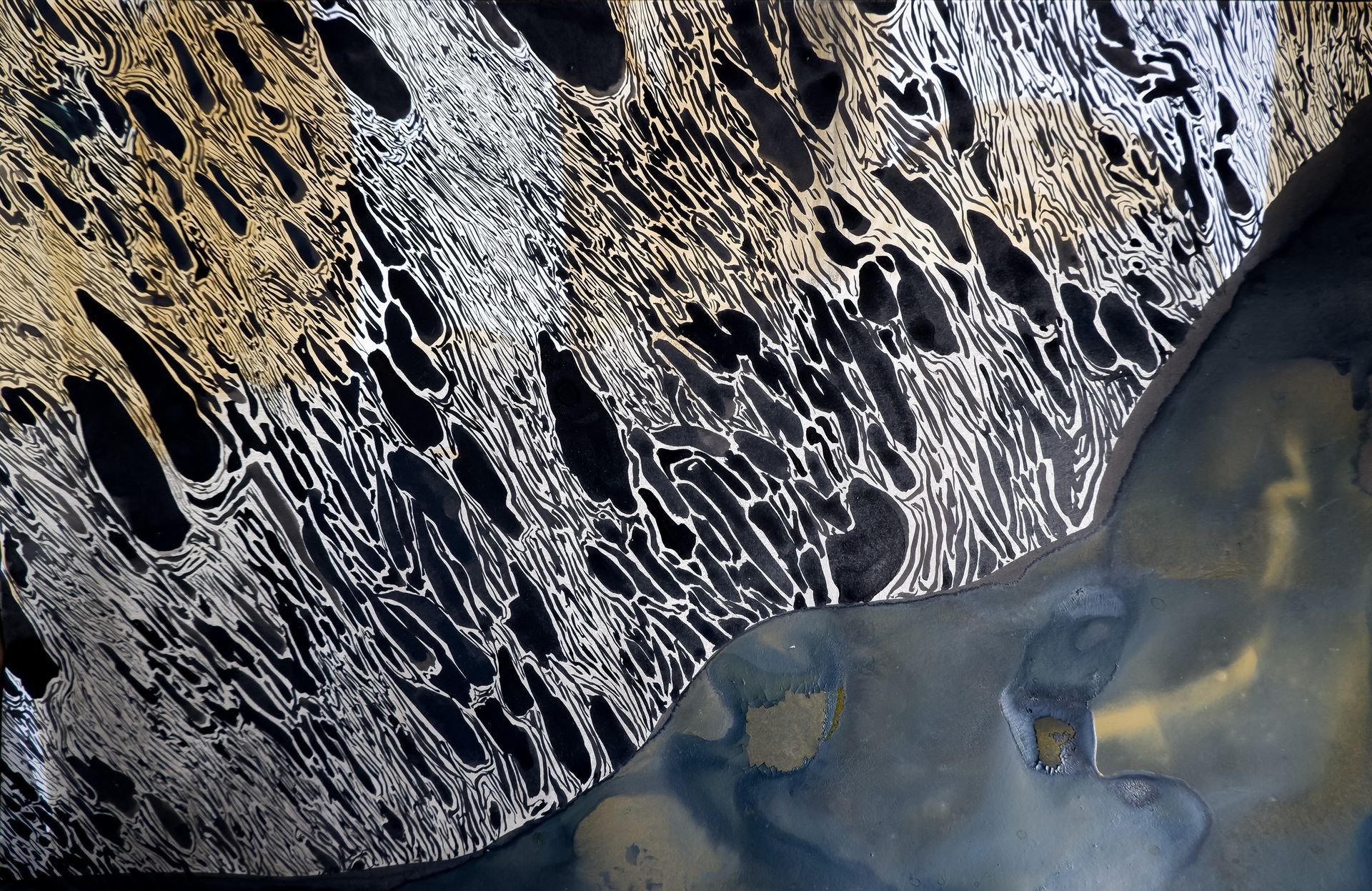 La selección de piezas fueron realizadas con tinta china y acuarela sobre diferentes tipos de papel (Xuan, reciclado, mate, etc.) haciendo dialogar constantemente –pero sin “coincidencias felices”- las líneas y las manchas; las manchas y las líneas, dejando que sea el devenir del propio proceso creativo el que haga emerger la forma del agua que le corresponde en cada caso.