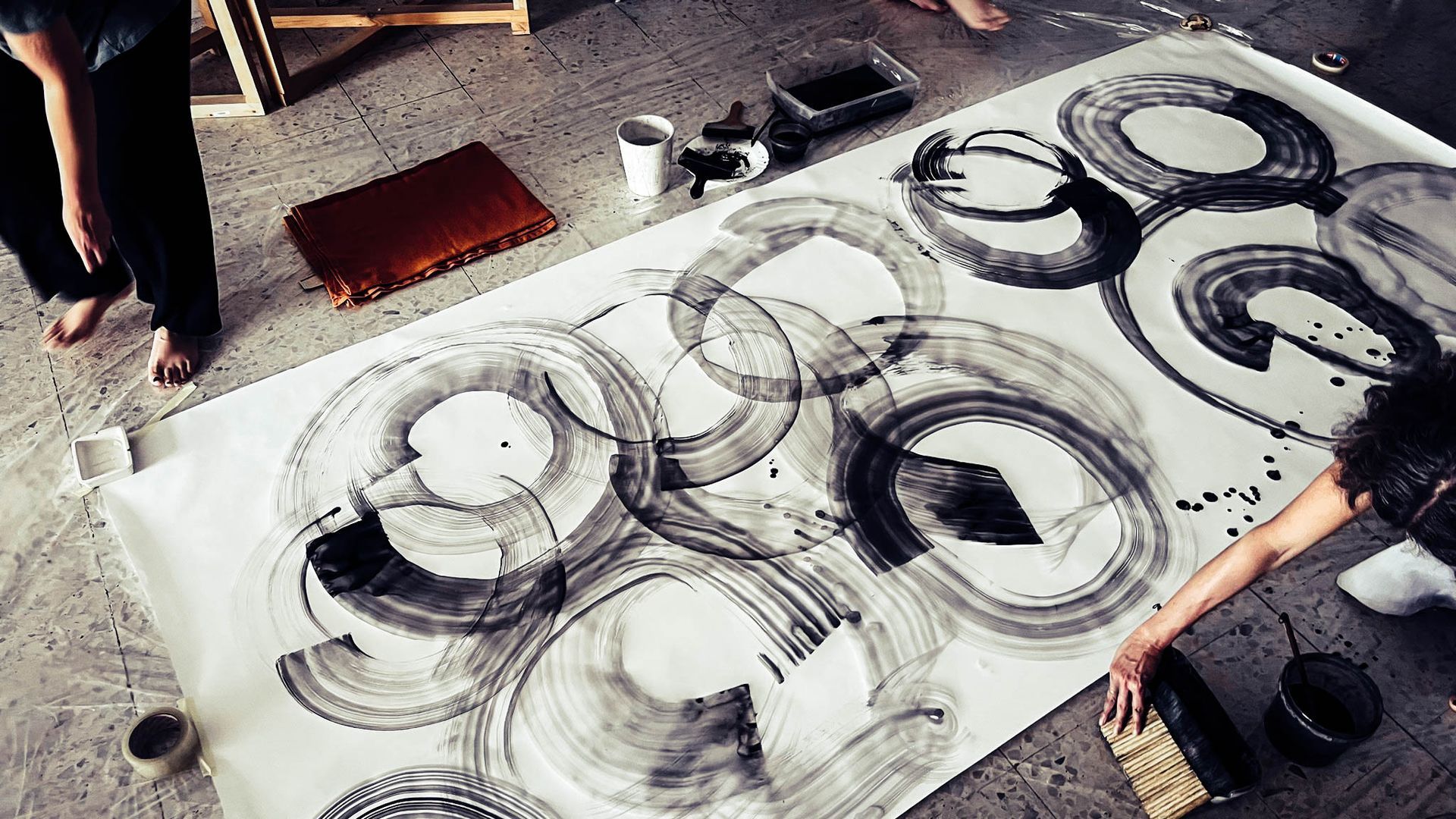 In these workshops we show how to hold the brush, compositional strategies in large dimensions, selection of the most appropriate materials, distribution of body weight, recognition of muscle tone and possibilities of movement with the brush in hand.