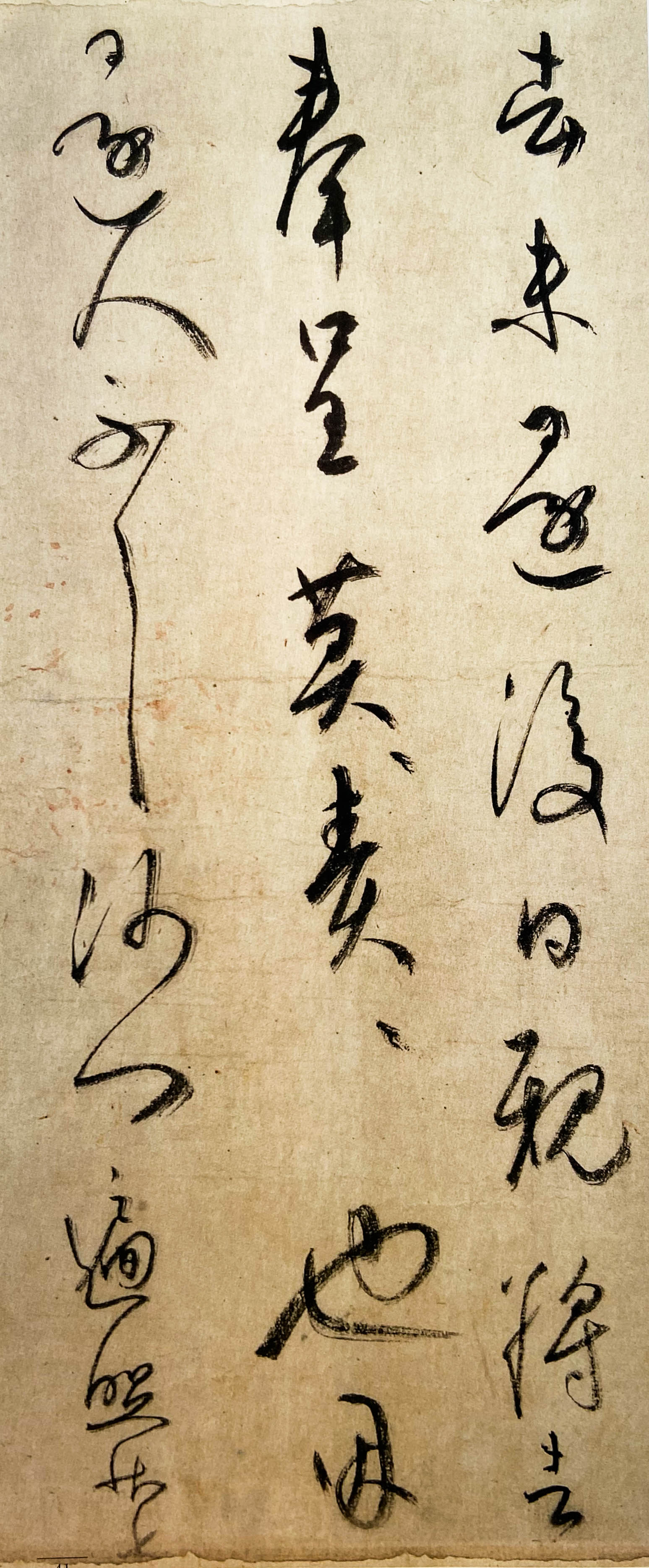 El estilo Sousho 草書 o “escritura de hierba” hace referencia al estilo cursivo. Un estilo que prioriza la fluidez y continuidad de la escritura cuando un trazo busca al otro y el máximo contacto sobre el papel durante su ejecución. Por esa razón la letra se sintetiza en movimientos rítmicos, mostrando así una riqueza en los trazos con cambios trabajados de manera muy sutil. Es más importante la belleza del trazo que la propia legibilidad del carácter.